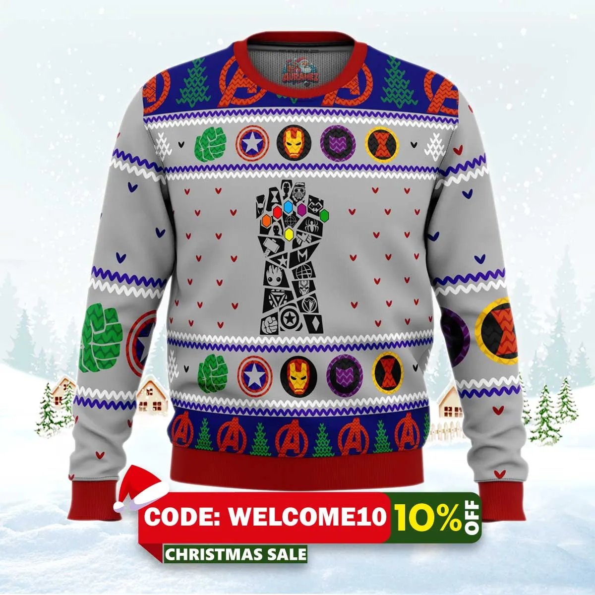 Tags: Avengers Gauntlet Ugly Christmas Sweater, Avengers sweater, funny ugly sweater, holiday gift idea, party outfit