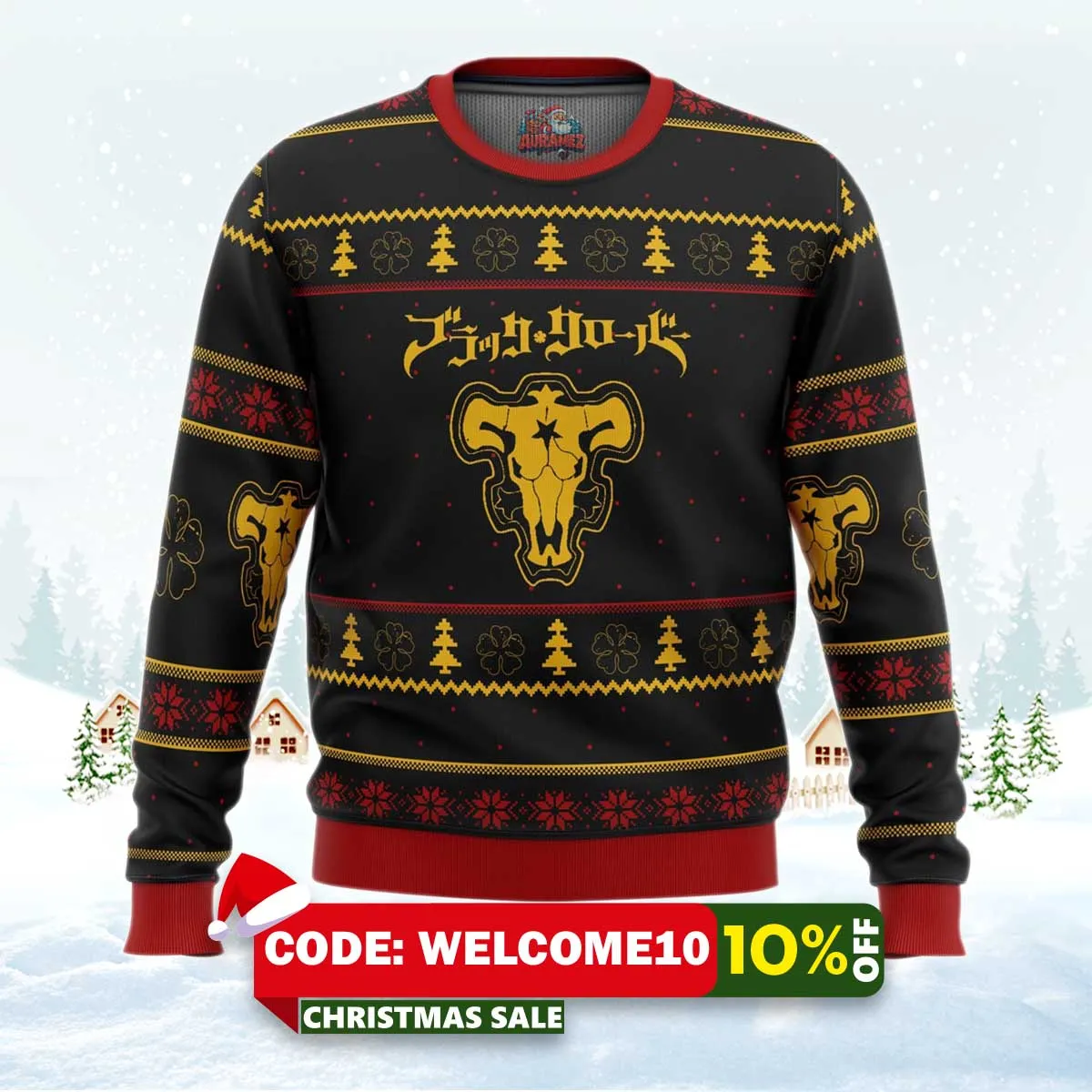 Tags: Black Clover Bulls Ugly Christmas Sweater, Black Clover sweater, funny ugly sweater, holiday gift idea, party outfit