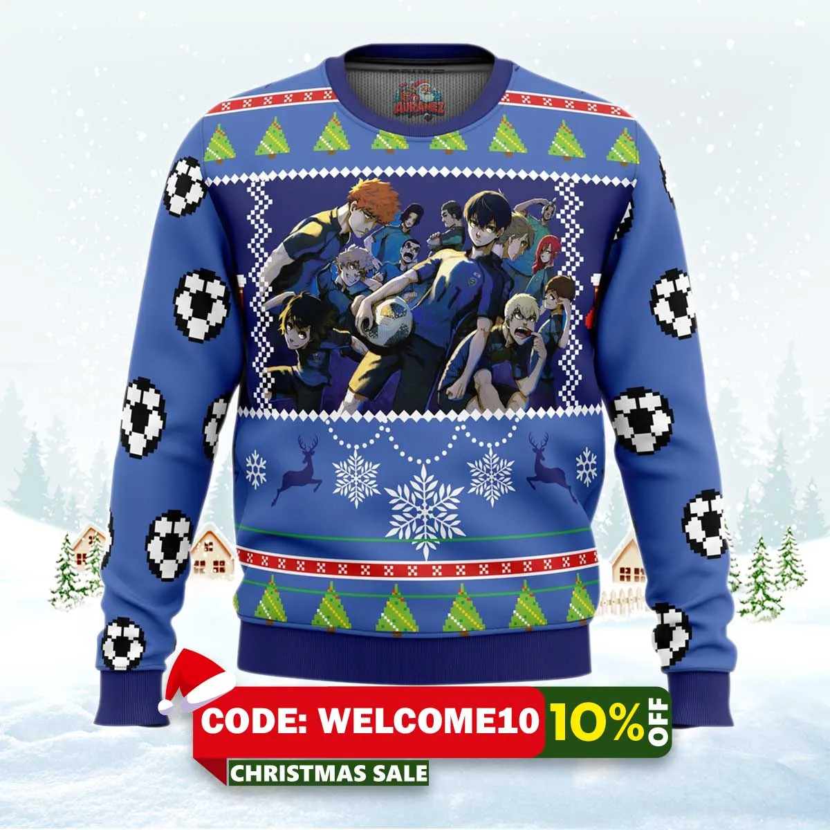 ⚠️ Limited stock available. Order your Blue Lock Ugly Christmas Sweater today from Auramez.com and make this season unforgettable!