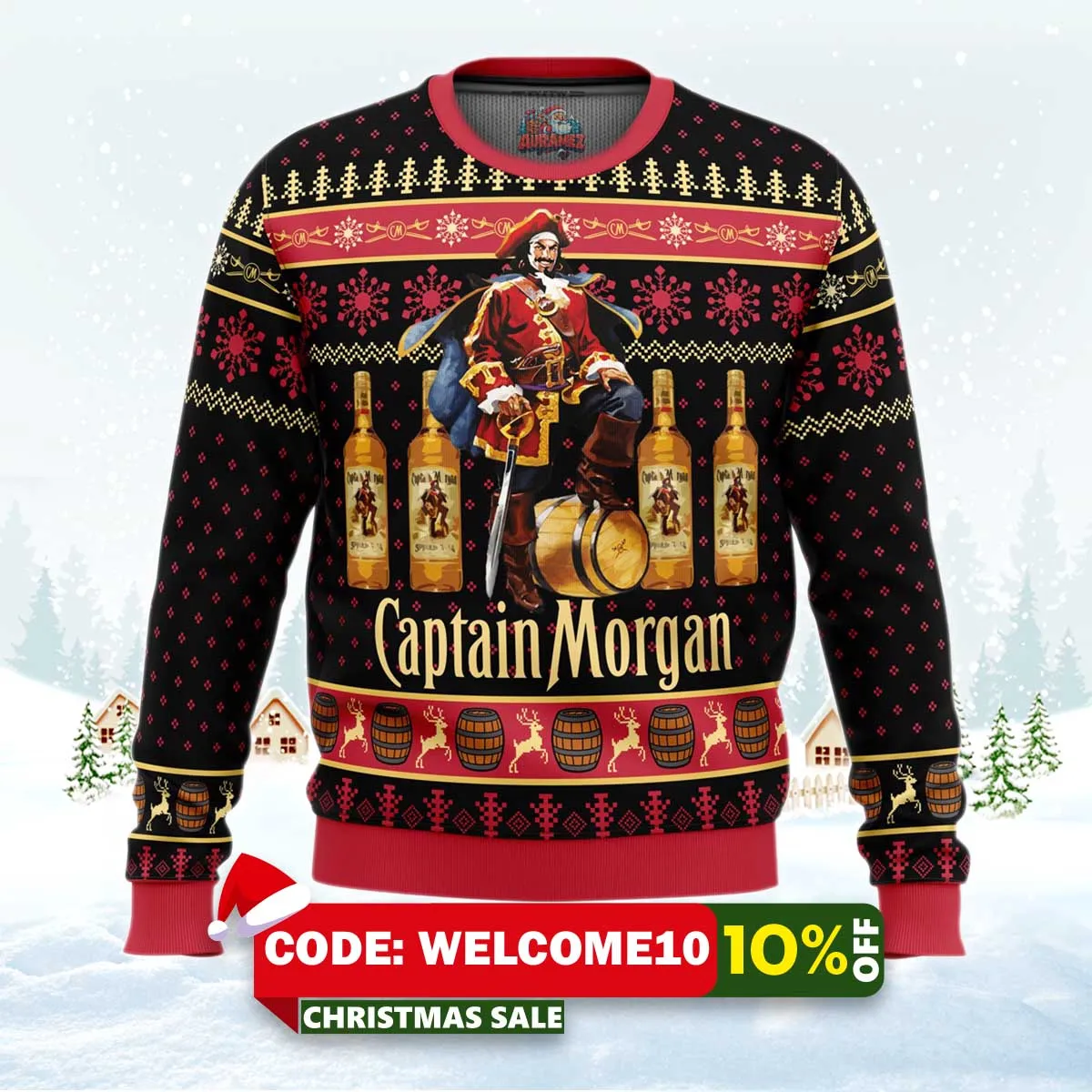 Embrace the festive cheer and the adventurous spirit of Captain Morgan this Christmas! This unique sweater blends holiday vibes with a touch of pirate flair, making it the perfect attire for any holiday get-together.