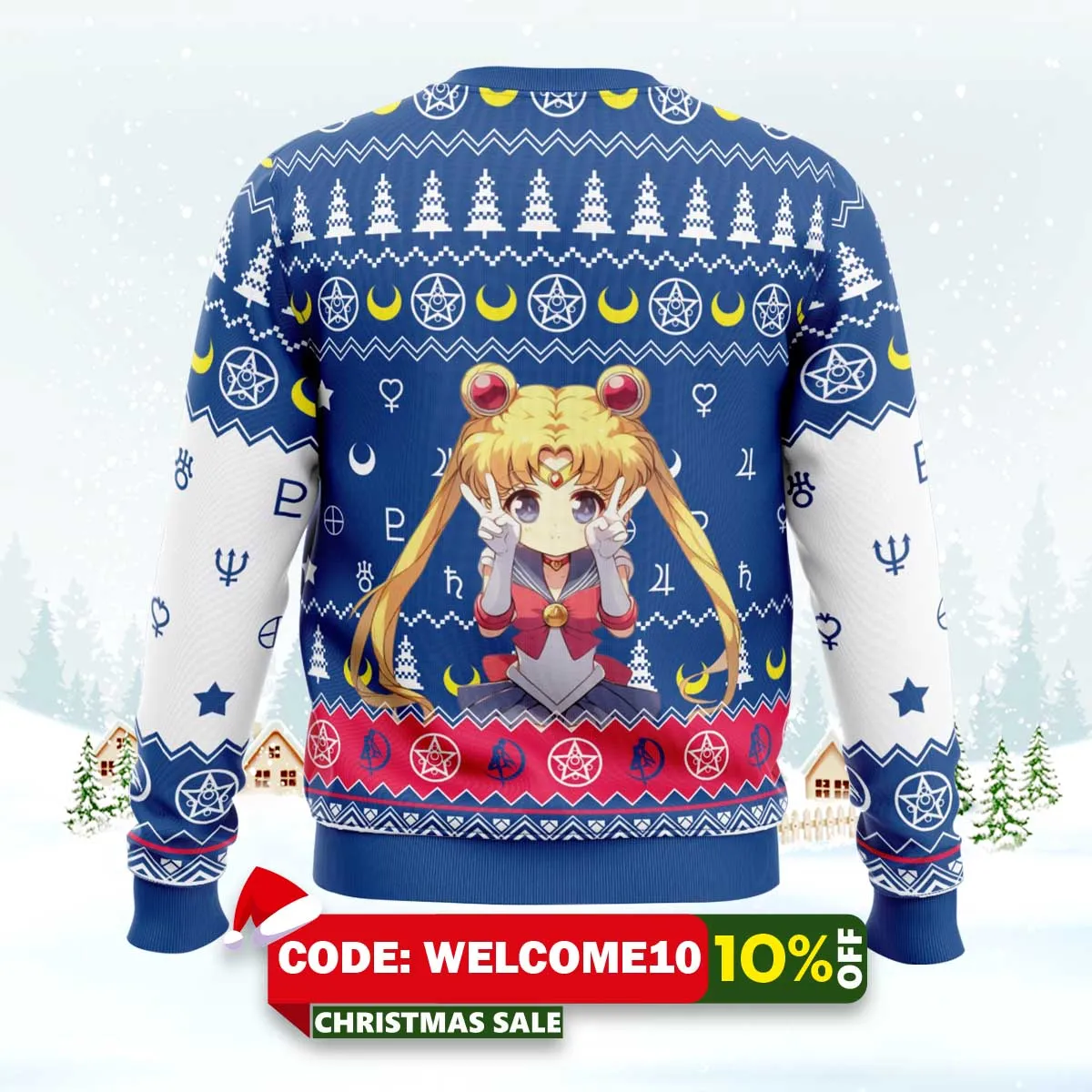 Tags: Chibi Usagi Tsukino Sailor Moon Ugly Christmas Sweater, Sailor Moon sweater, funny ugly sweater, holiday gift idea, party outfit