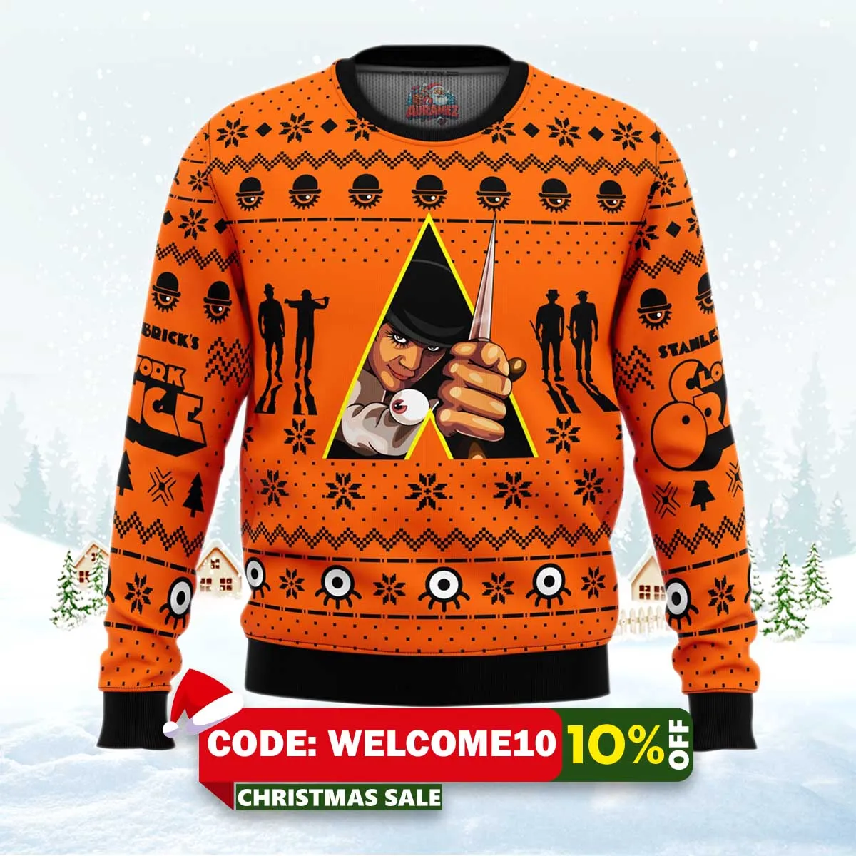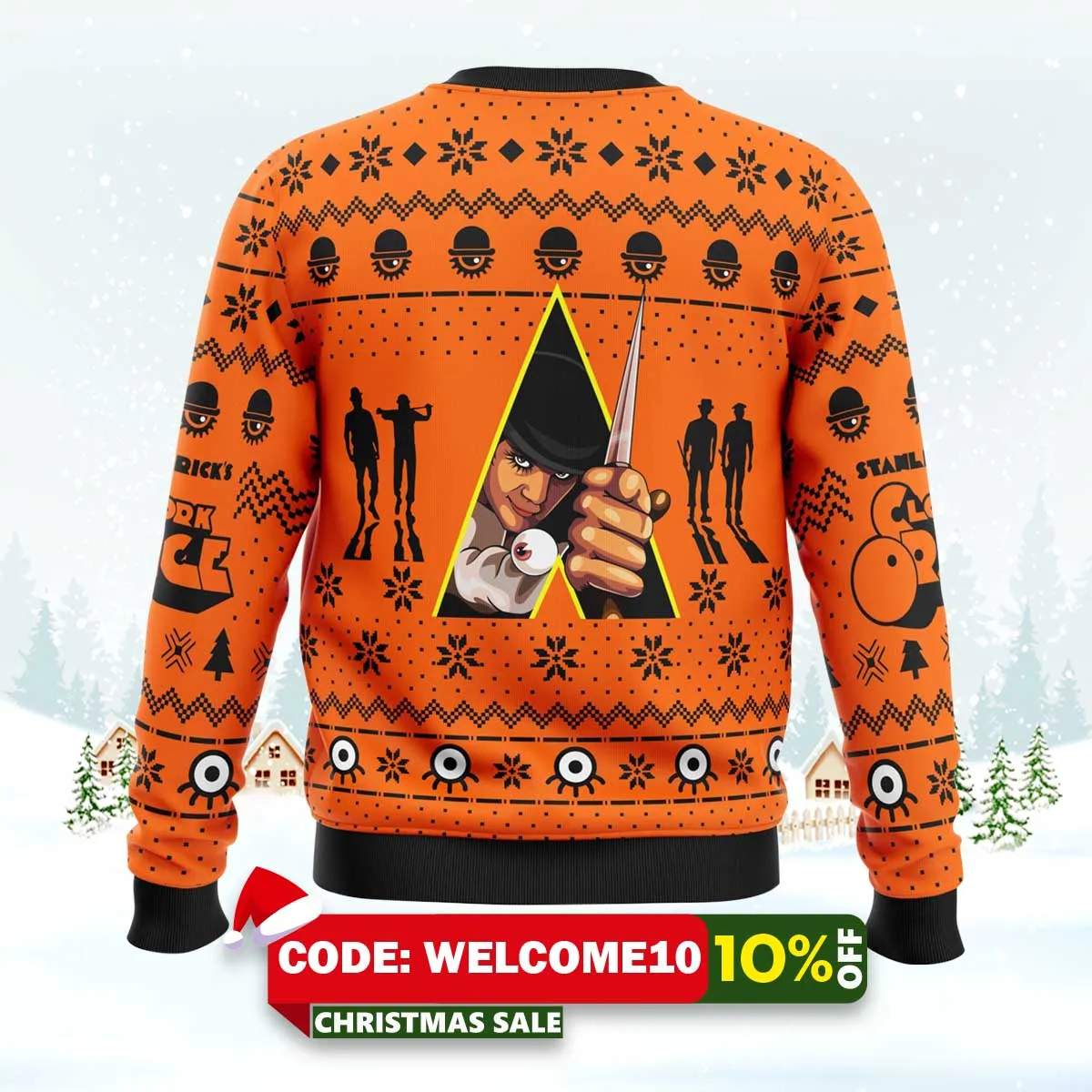 ⚠️ Limited stock available. Order your Christmas Alex A Clockwork Orange Ugly Christmas Sweater today from Auramez.com and make this season unforgettable!