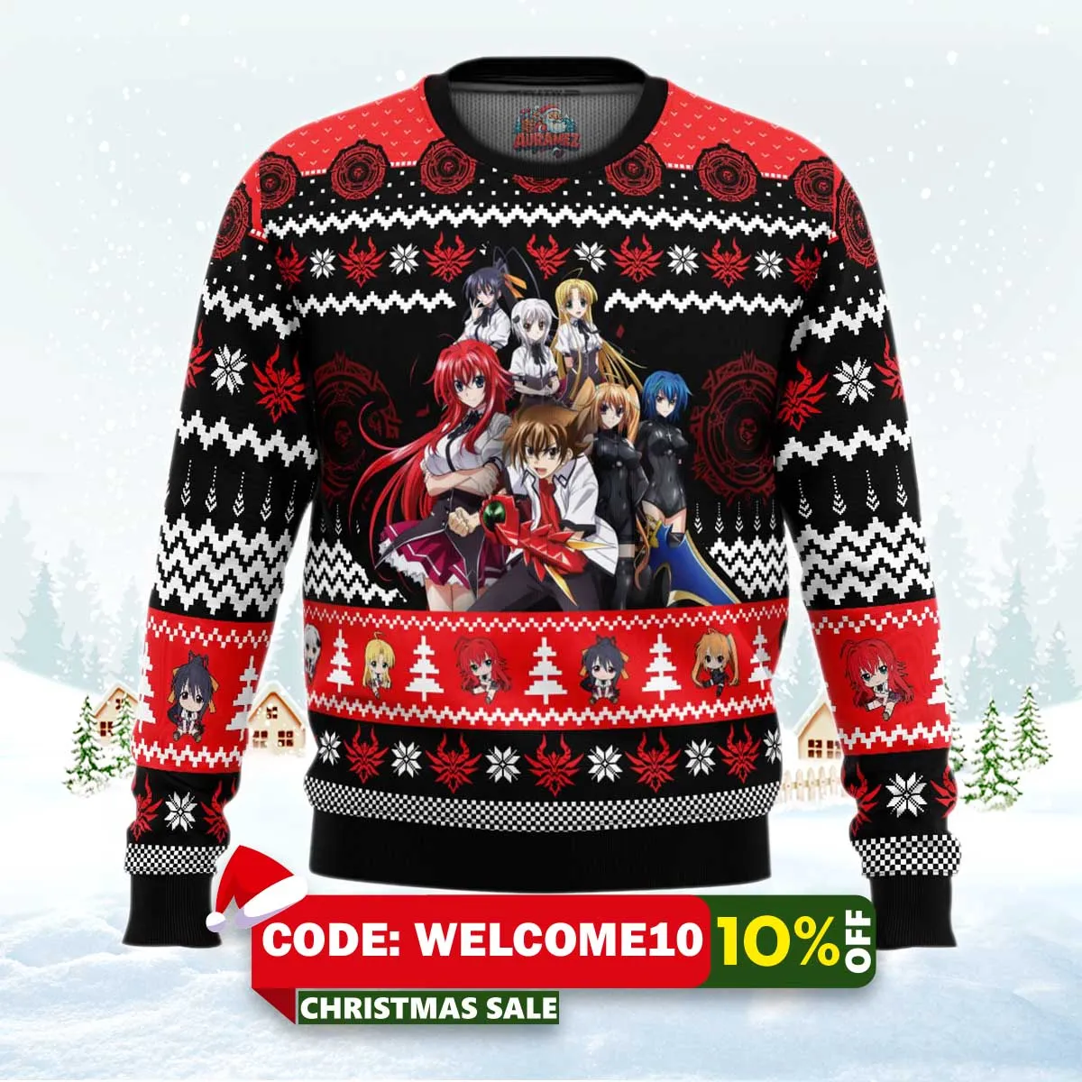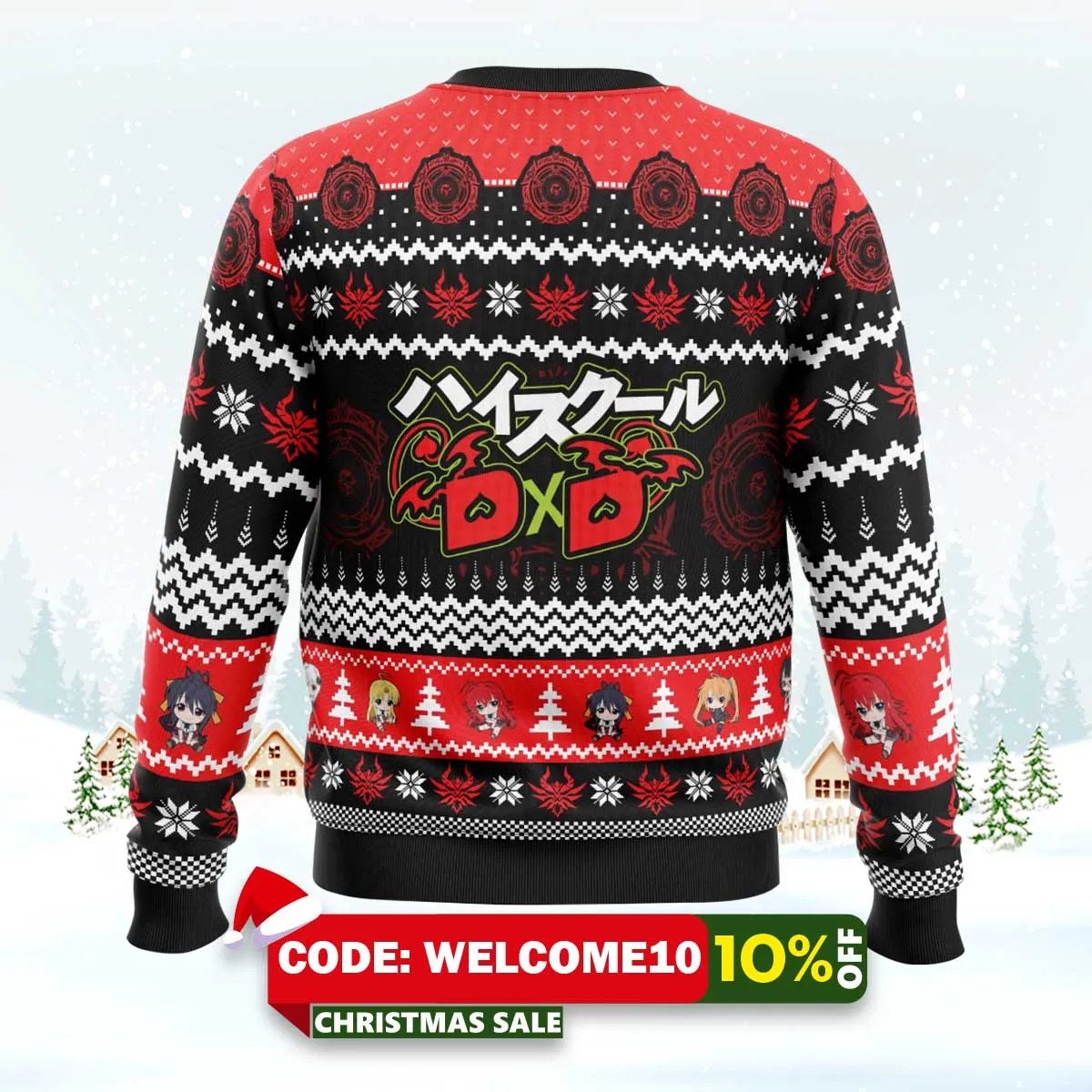 ⚠️ Limited stock available. Order your Christmas Characters High School Dxd Ugly Christmas Sweater today from Auramez.com and make this season unforgettable!