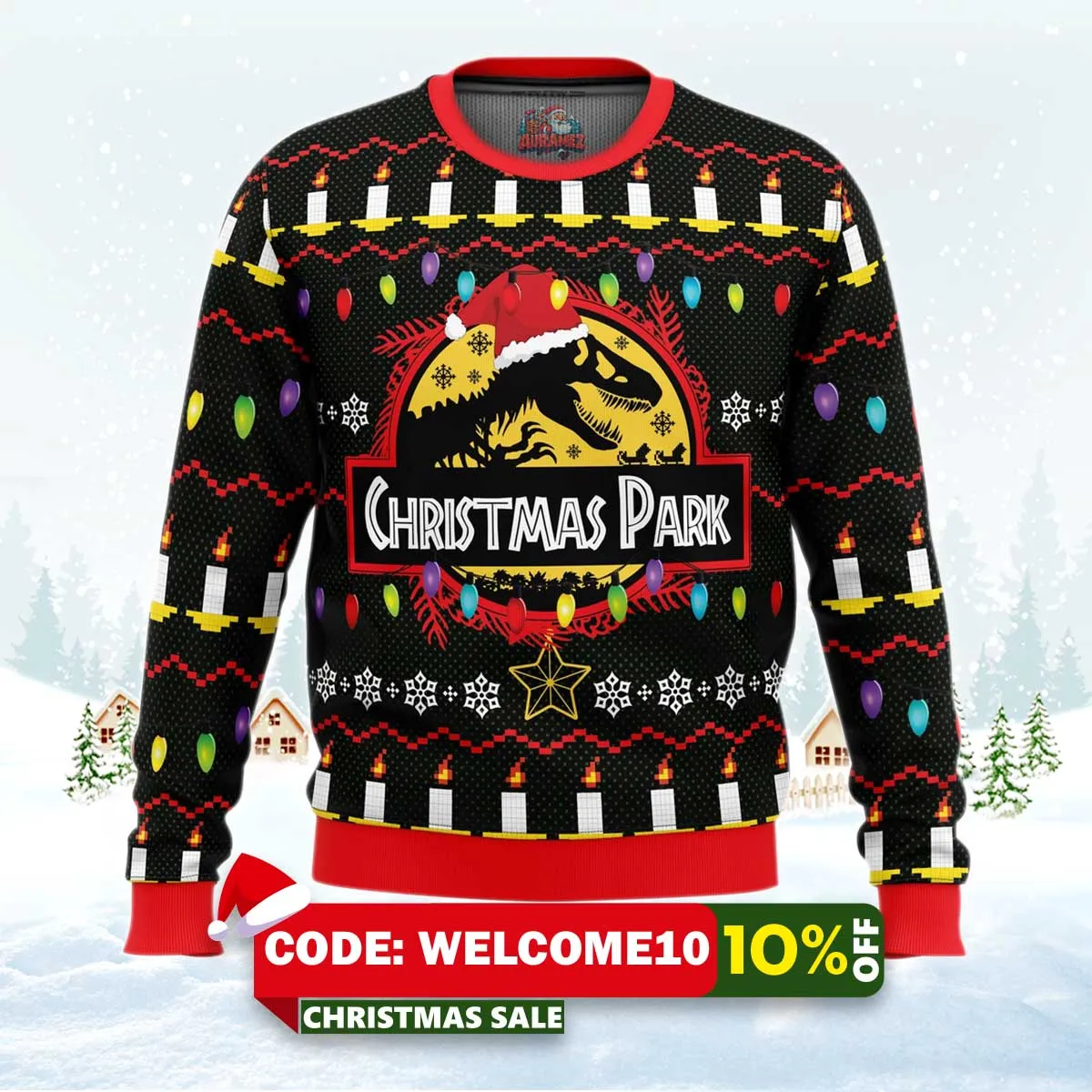 ⚠️ Limited stock available. Order your Christmas Park Jurassic Park Ugly Christmas Sweater today from Auramez.com and make this season unforgettable!