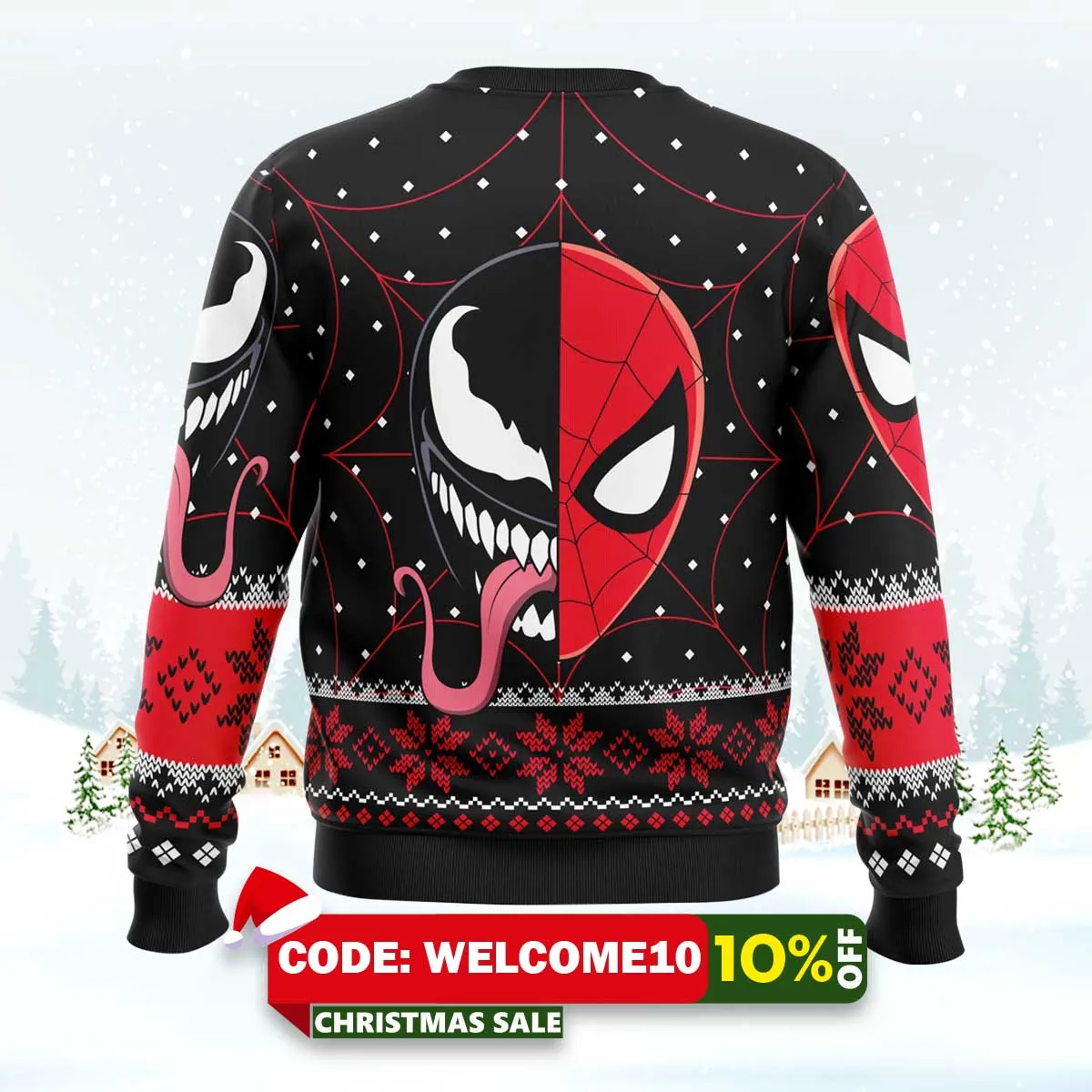 Tags: Christmas Spider Man Venom Marvel Comics Ugly Christmas Sweater, Marvel Comics sweater, funny ugly sweater, holiday gift idea, party outfit