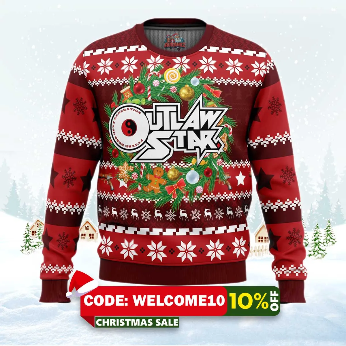 Embrace the spirit of Outlaw Star this holiday season with our Christmas Time Outlaw Star Ugly Christmas Sweater. It’s perfect for holiday parties, cozy family gatherings, or as a unique gift for the anime fan in your life. Stand out and celebrate in style!