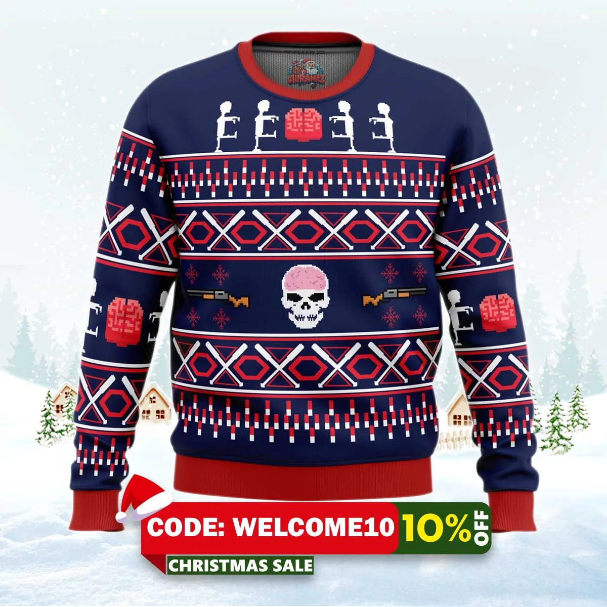 This Christmas Zombie Ugly Sweater captures the quirky fun of the holiday season while nodding to the zombie fandom. It’s the ideal way to stand out at any holiday event, ensuring you’re both festive and a little spooky!