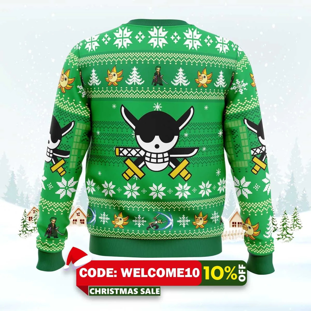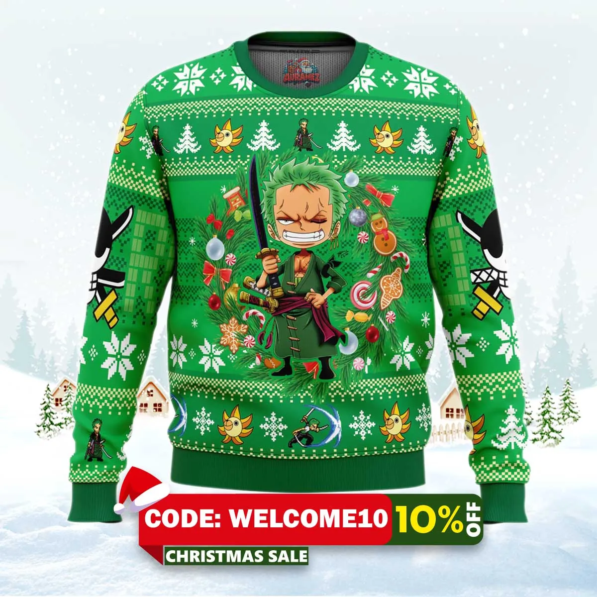 ⚠️ Limited stock available. Order your Christmas Zoro One Piece Ugly Sweater today from Auramez.com and make this season unforgettable!