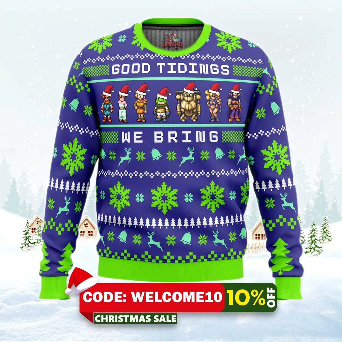 Tags: Chrono Trigger Good Tidings We Bring Ugly Sweater, Chrono Trigger sweater, funny ugly sweater, holiday gift idea, party outfit