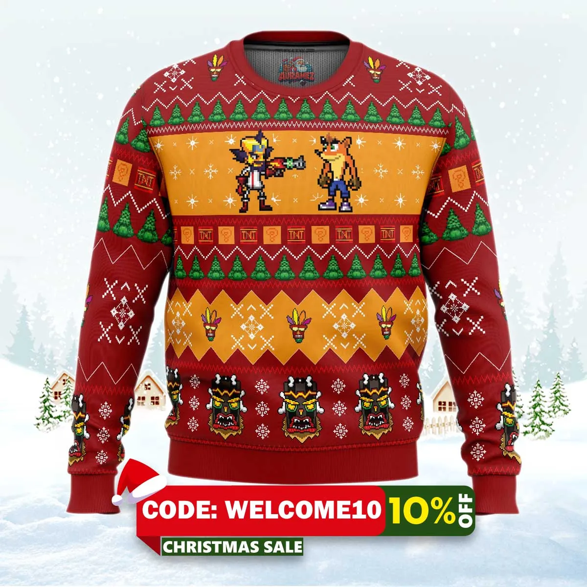Celebrate the holiday spirit and your love for gaming with the Crash Bandicoot Ugly Christmas Sweater. This unique piece captures the fun and excitement of the Crash Bandicoot universe, making it the perfect attire for your festive events!