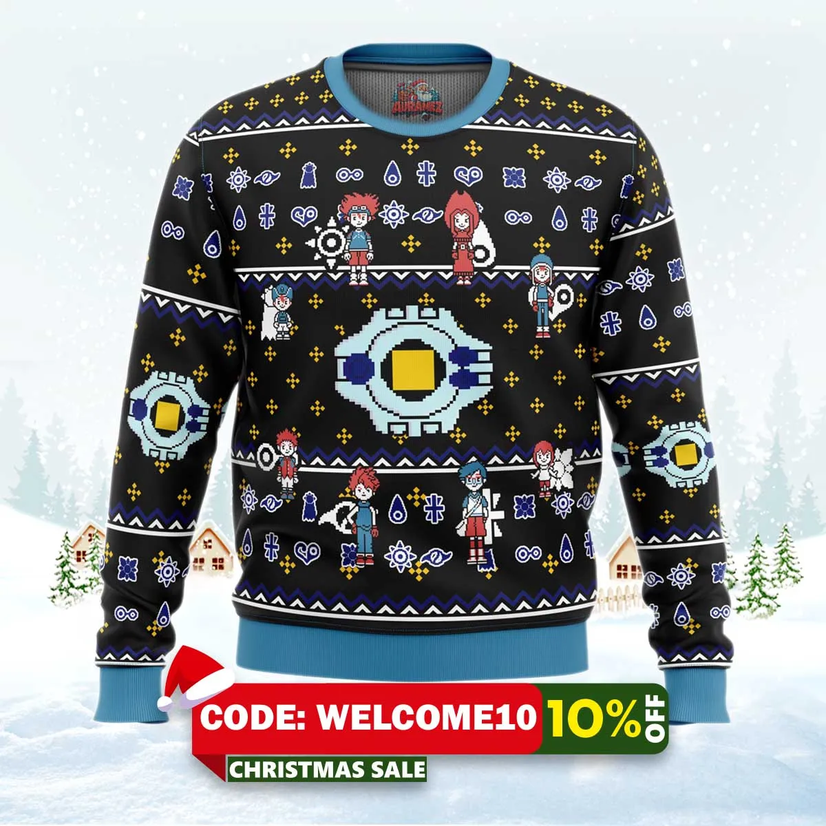 ⚠️ Limited stock available. Order your Digimon Characters Ugly Christmas Sweater today from Auramez.com and make this season unforgettable!