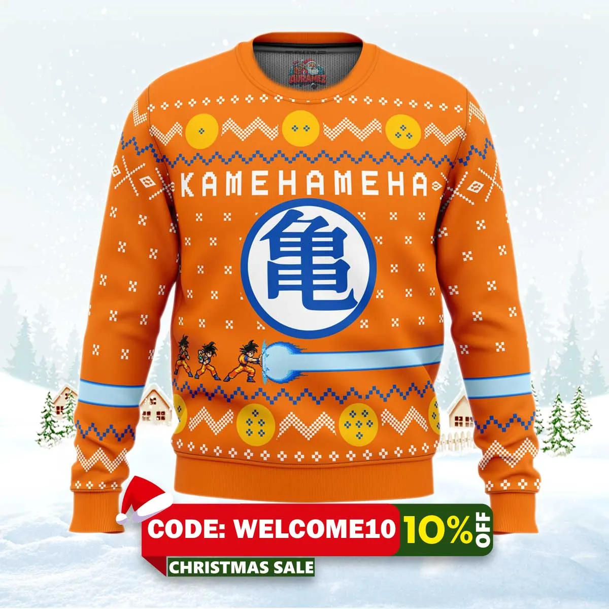 Tags: Dragon Ball Z Kamehameha Ugly Christmas Sweater, Dragon Ball Z sweater, funny ugly sweater, holiday gift idea, party outfit