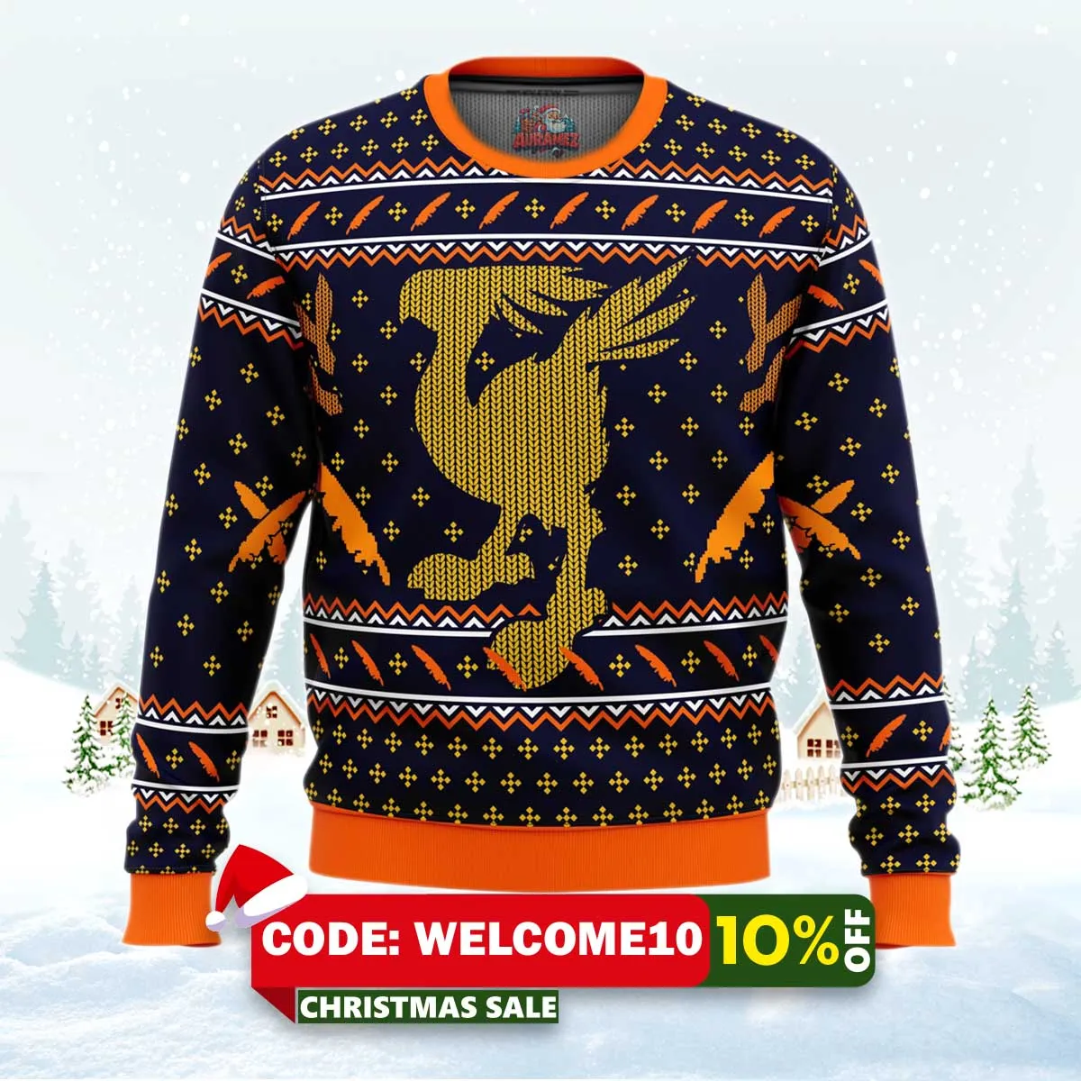 This Final Fantasy Chocobo Ugly Christmas Sweater captures the essence of holiday cheer mixed with the enchanting world of gaming, making it an ideal choice for fans looking to express their love for the franchise while celebrating the most wonderful time of the year.