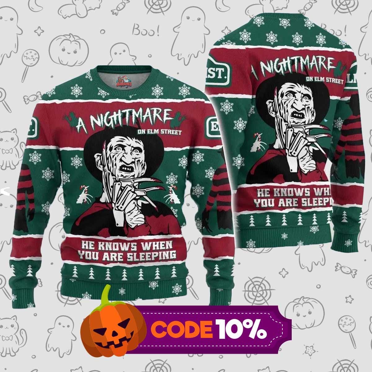 Freddy Krueger Ugly Halloween Sweater – Nightmare on Elm Street Horror Knit Auramez
