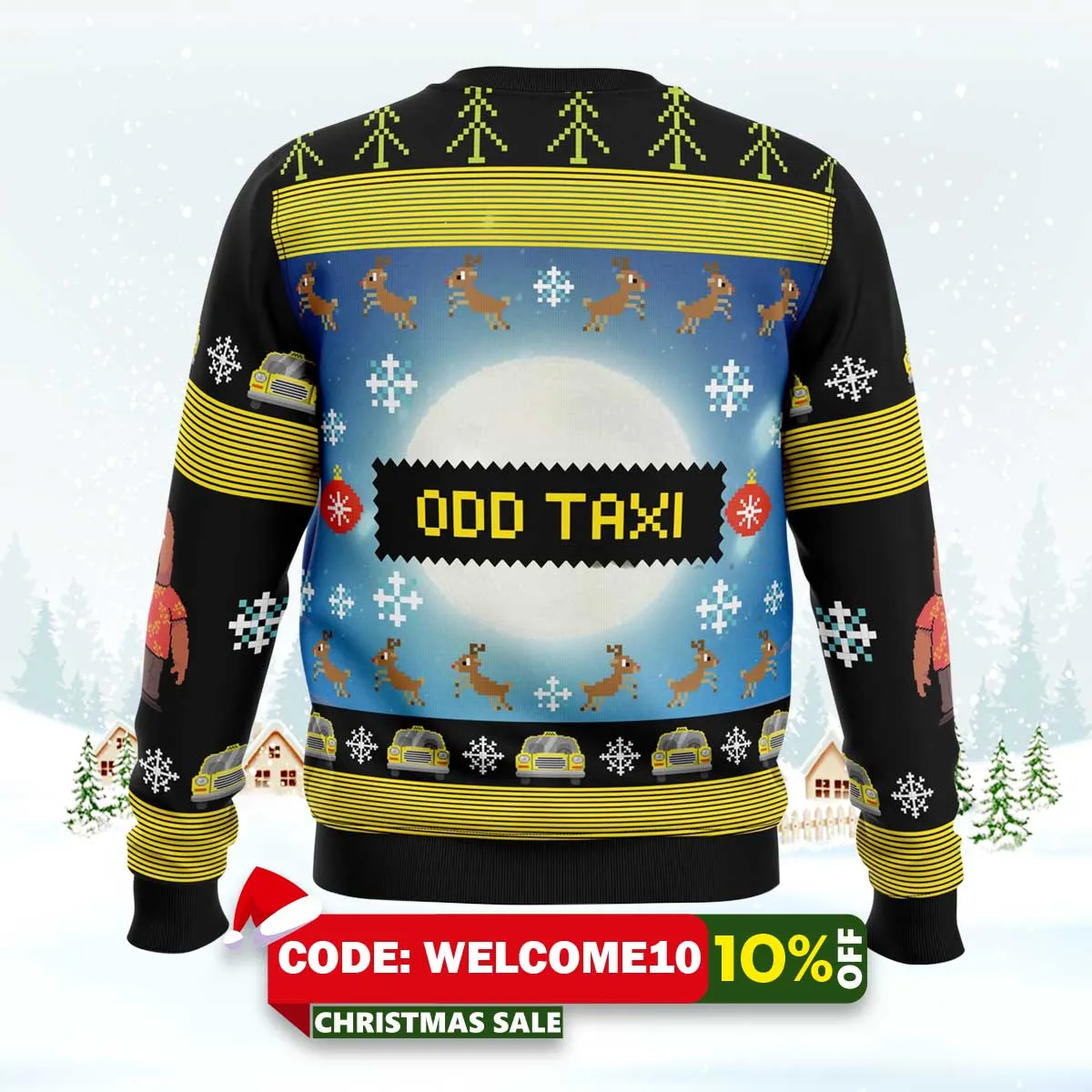 Tags: Full Moon Odd Taxi Ugly Christmas Sweater, Odd Taxi sweater, funny ugly sweater, holiday gift idea, party outfit