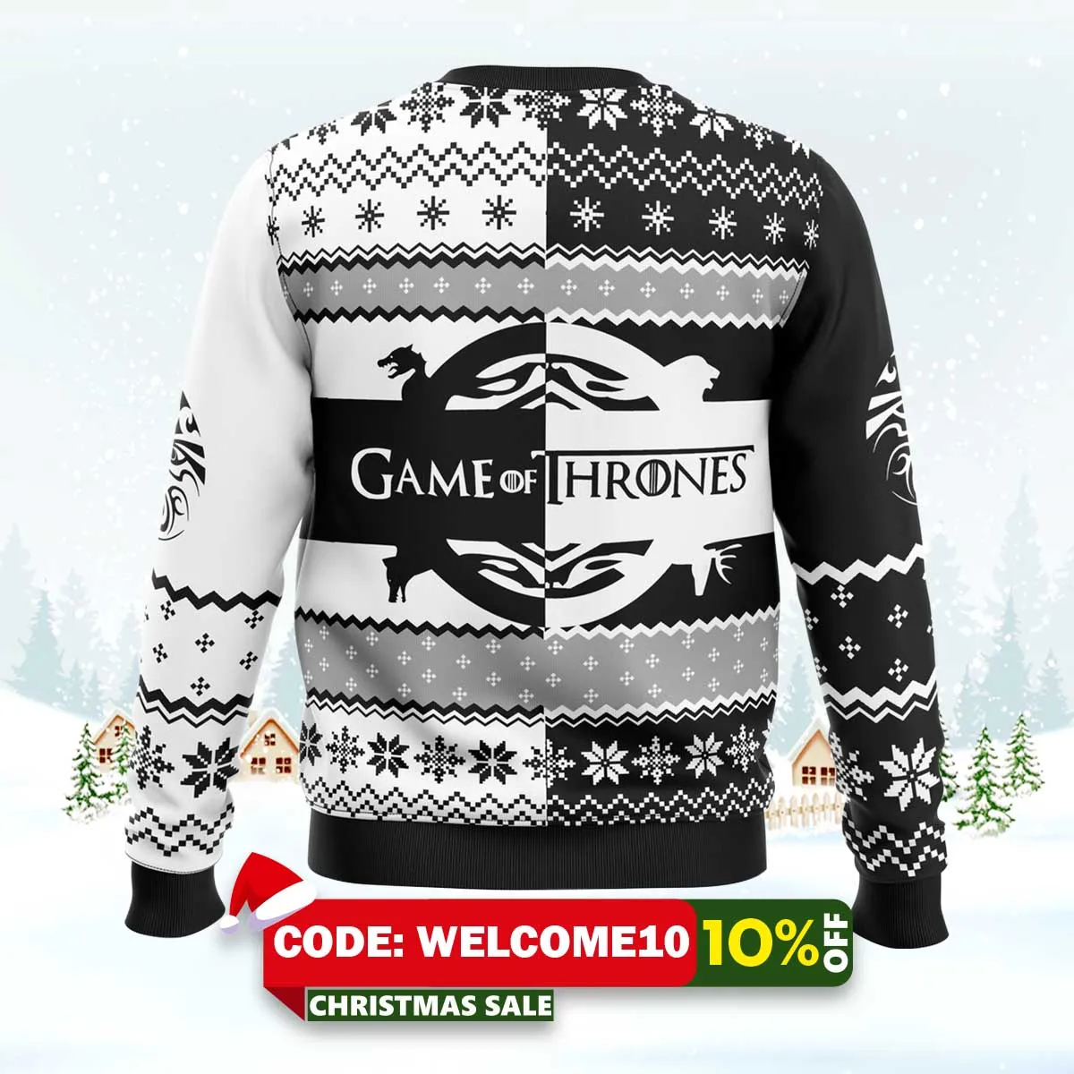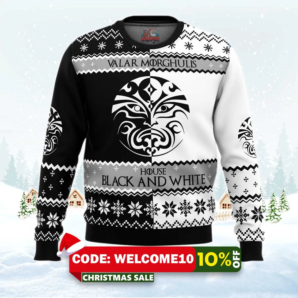 ⚠️ Limited stock available. Order your Game Of Thrones House Black And White Ugly Christmas Sweater today from Auramez.com and make this season unforgettable!