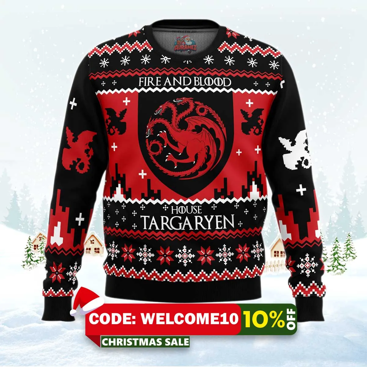 ⚠️ Limited stock available. Order your Game Of Thrones House Targaryen Ugly Christmas Sweater today from Auramez.com and make this season unforgettable!