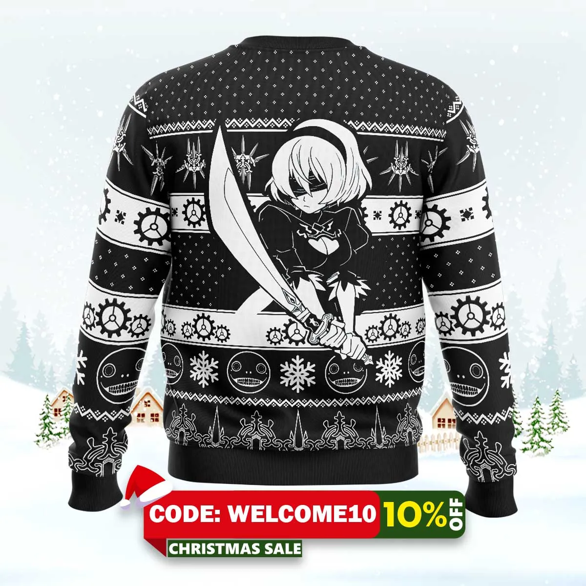 Tags: Game Of Yorha Nier Automata Ugly Christmas Sweater, Nier Automata sweater, funny ugly sweater, holiday gift idea, party outfit