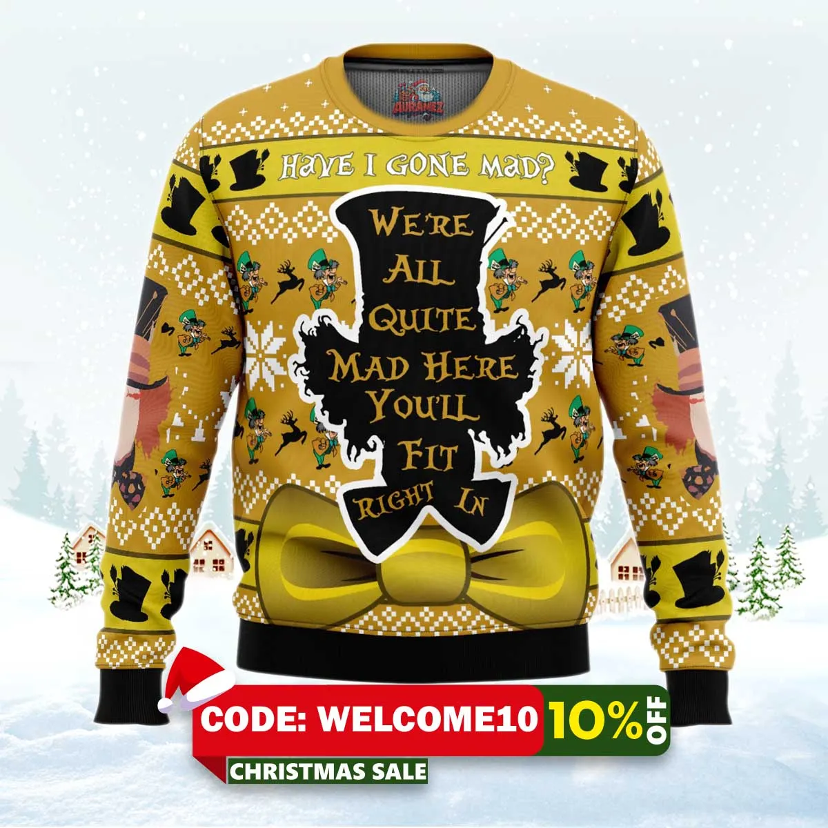 ⚠️ Limited stock available. Order your Have I Gone Mad Alice In Wonderland Ugly Christmas Sweater today from Auramez.com and make this season unforgettable!