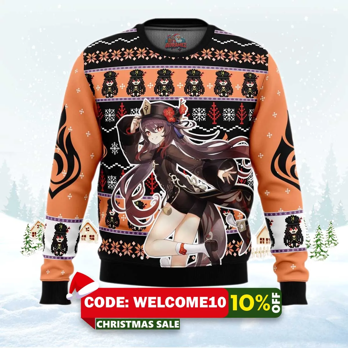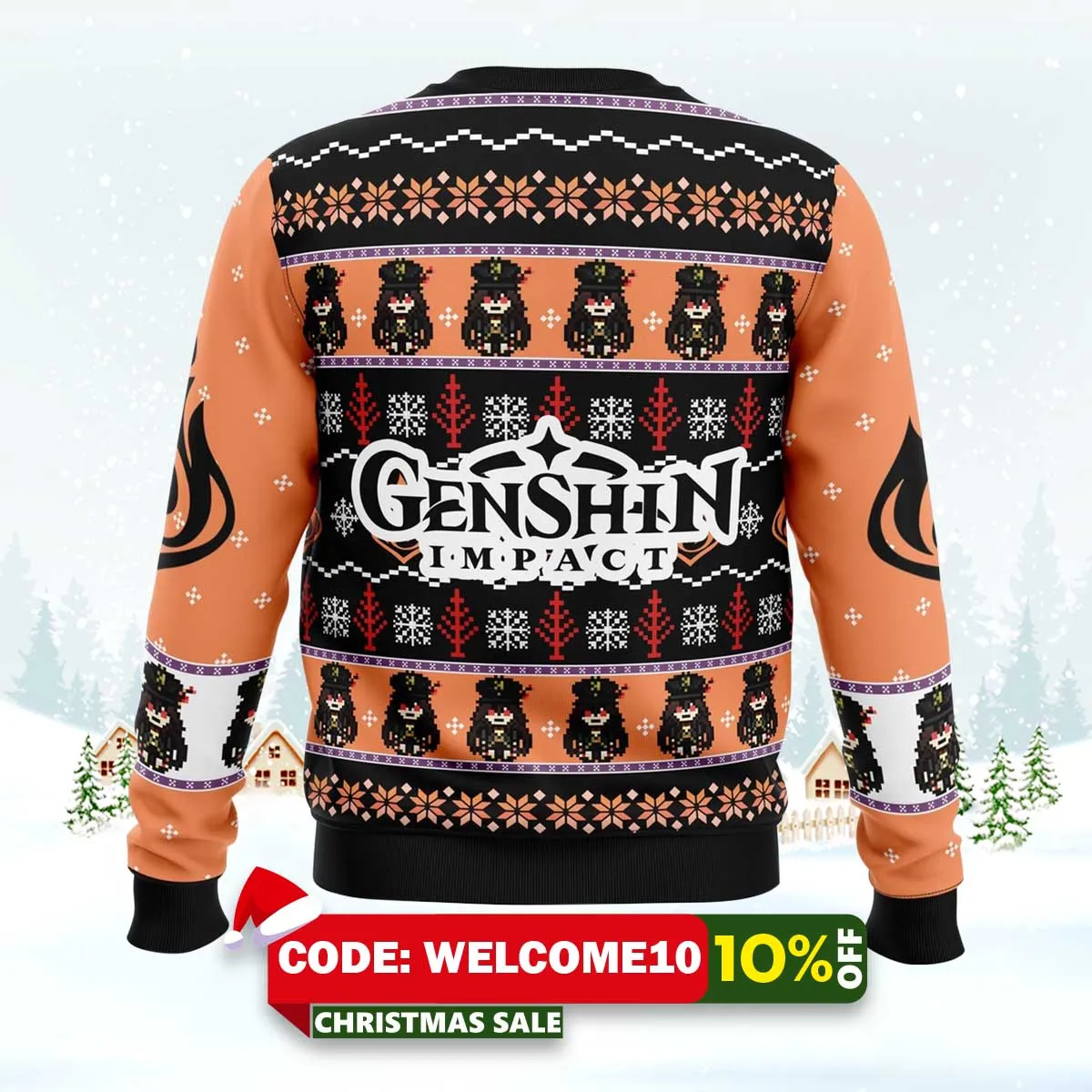 Tags: Hu Tao Genshin Impact Ugly Christmas Sweater, Genshin Impact sweater, funny ugly sweater, holiday gift idea, party outfit