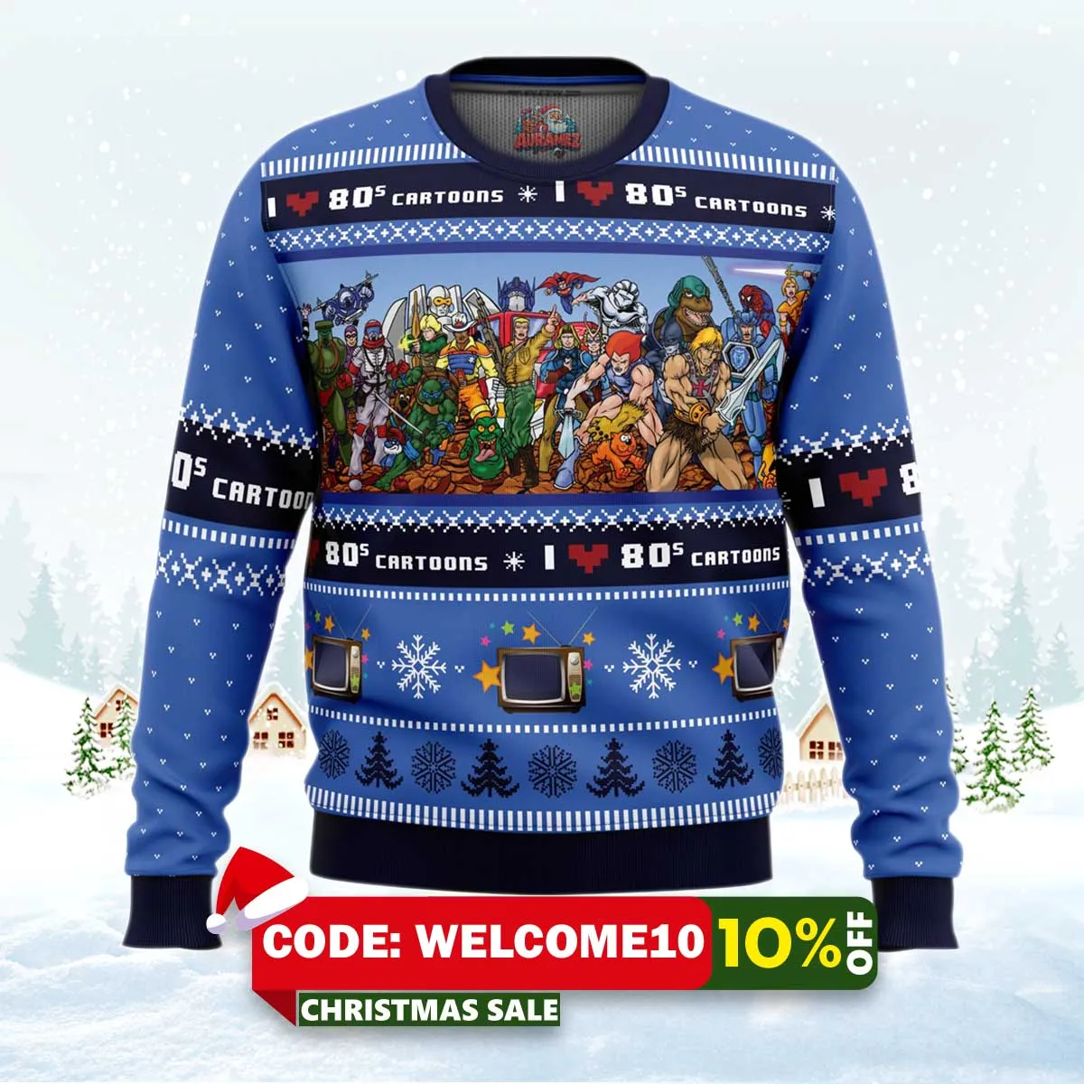 I Love The 80S Cartoons Ugly Christmas Sweater
