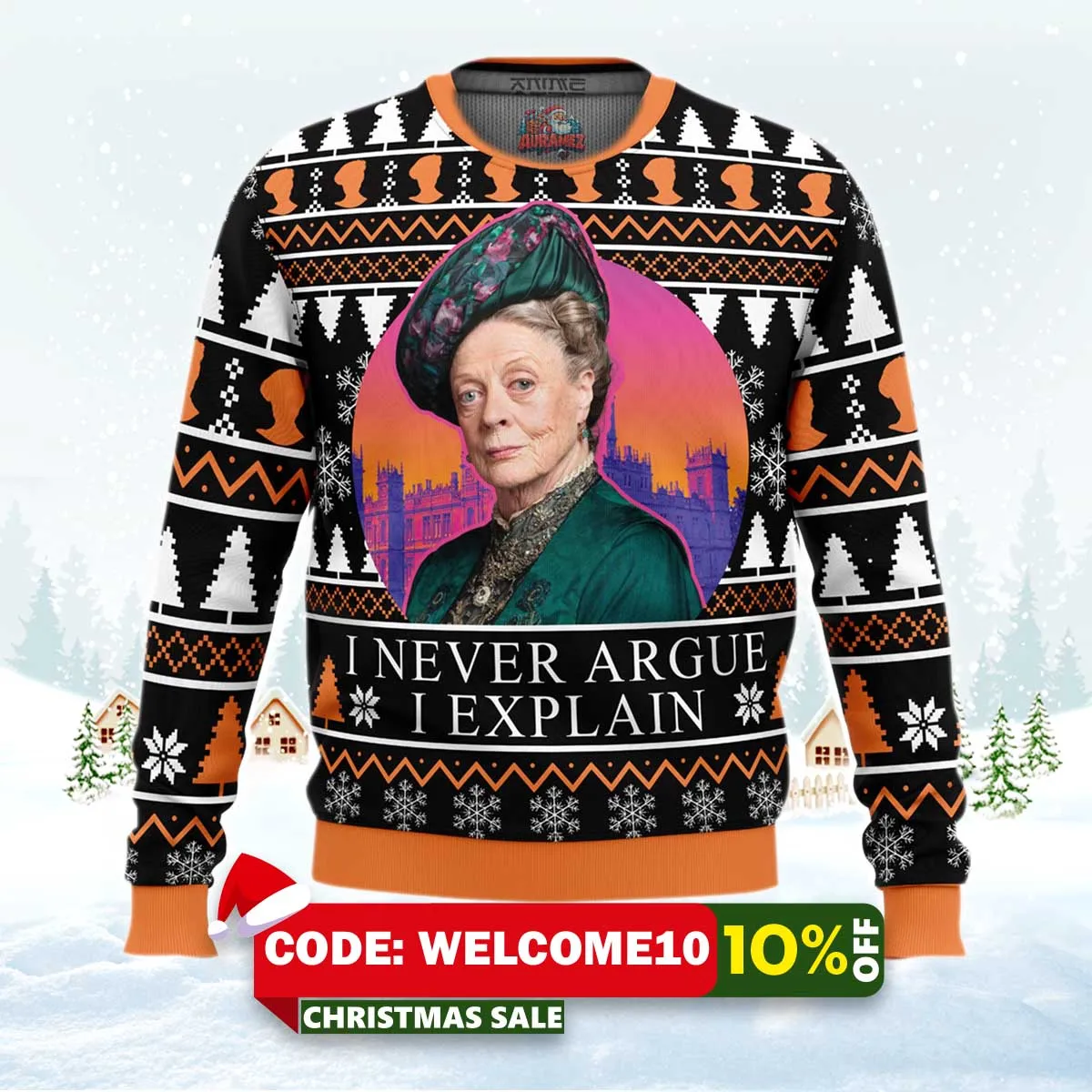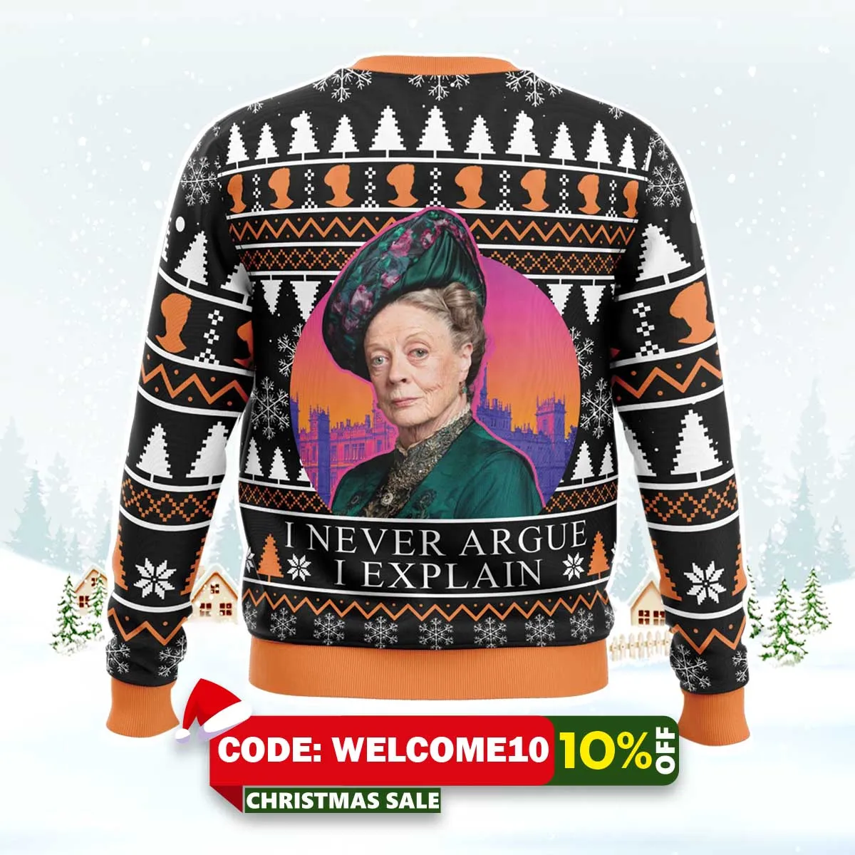 ⚠️ Limited stock available. Order your I Never Argue I Explain Downton Abbey Ugly Christmas Sweater today from Auramez.com and make this season unforgettable!