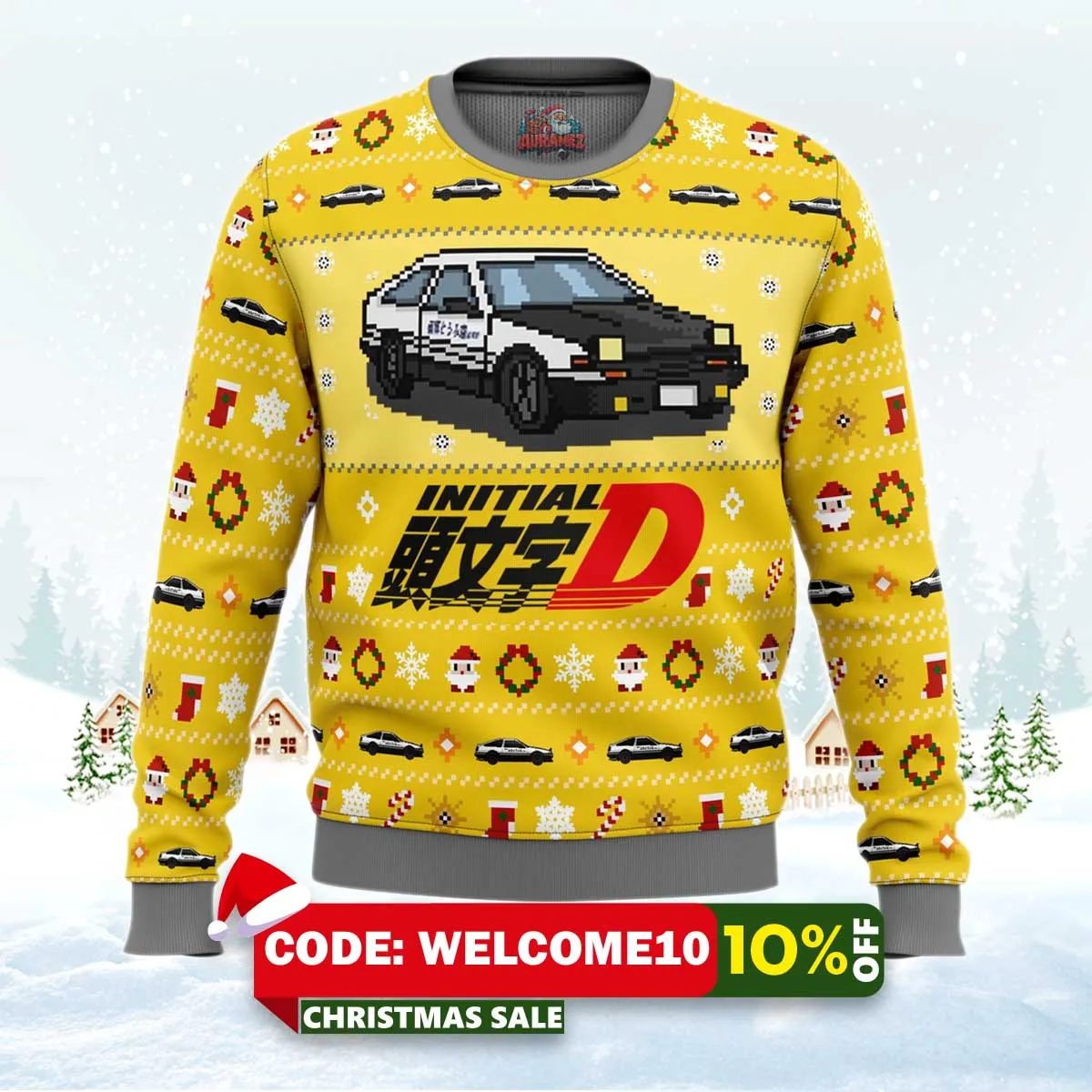 ⚠️ Limited stock available. Order your Initial D Classic Toyota Car Ugly Christmas Sweater today from Auramez.com and make this season unforgettable!