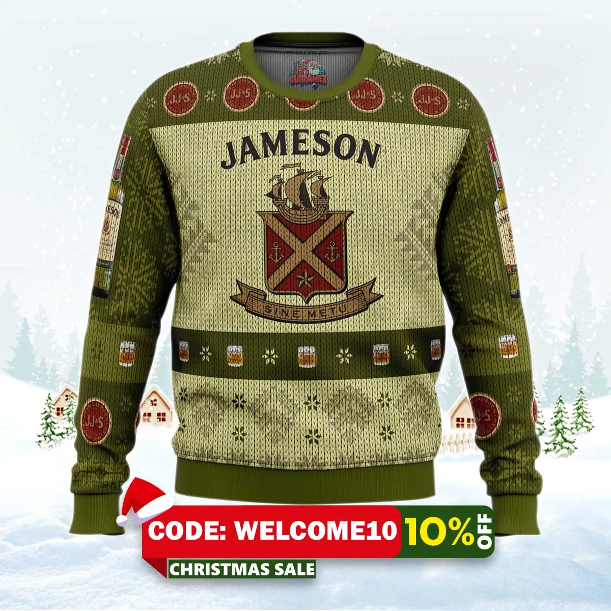 ⚠️ Limited stock available. Order your Jameson Irish Whiskey Ugly Christmas Sweater today from Auramez.com and make this season unforgettable!