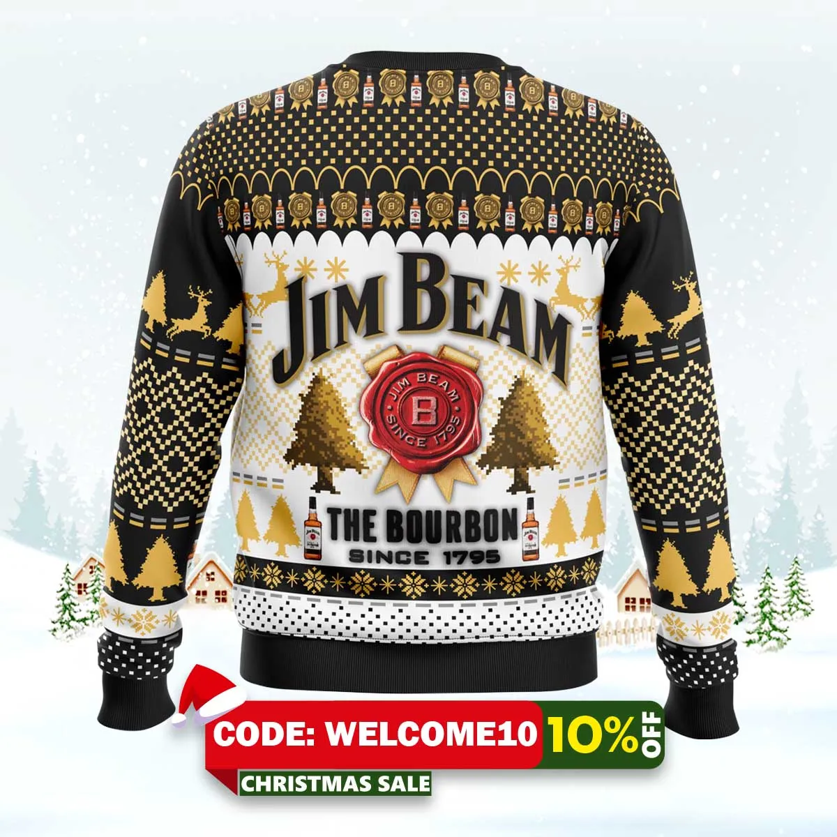 ⚠️ Limited stock available. Order your Jim Beam The Bourbon Ugly Christmas Sweater today from Auramez.com and make this season unforgettable!
