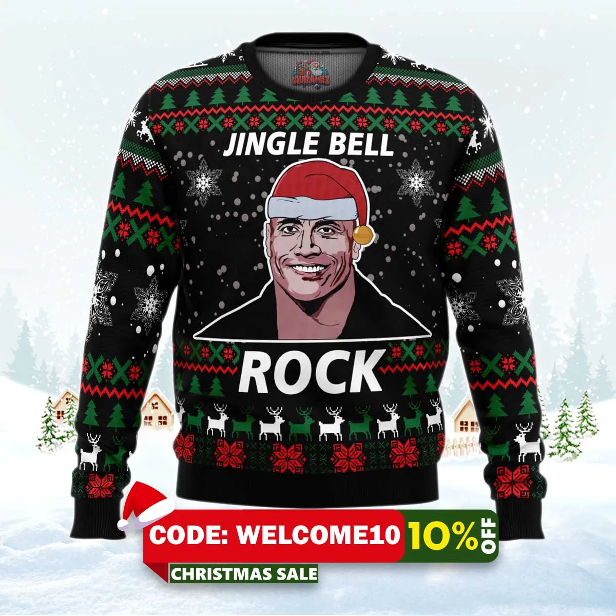 ⚠️ Limited stock available. Order your Jingle Bell Rock Dwayne Johnson Ugly Christmas Sweater today from Auramez.com and make this season unforgettable!