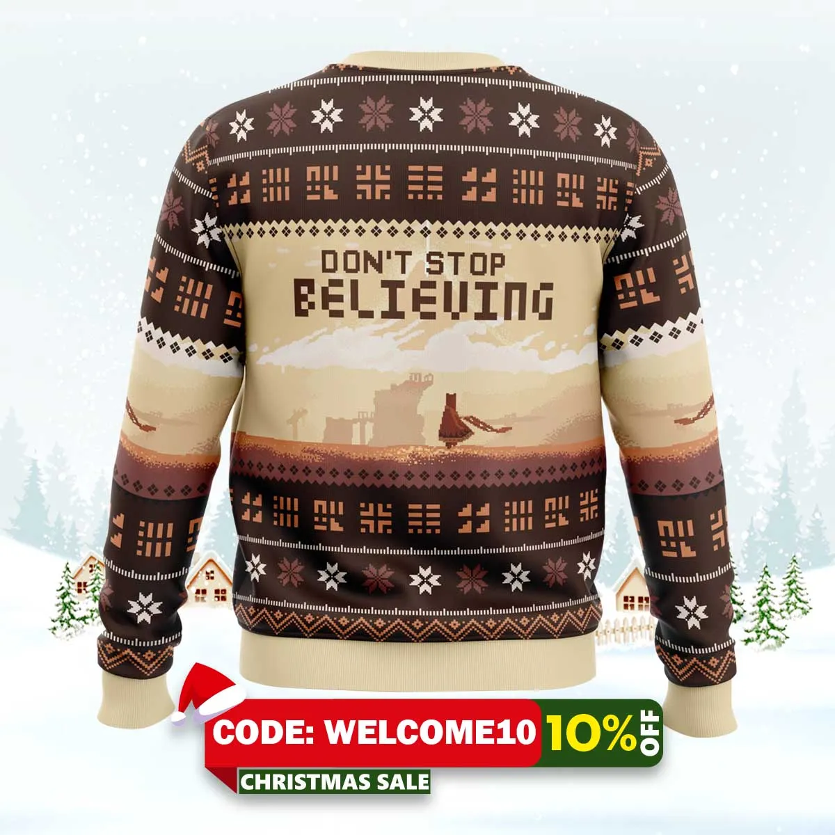Embrace the warmth and joy of the Journey Inspired Ugly Christmas Sweater this holiday season. This unique design reflects a sense of adventure and togetherness, making it the perfect attire for family gatherings, holiday parties, and festive outings.