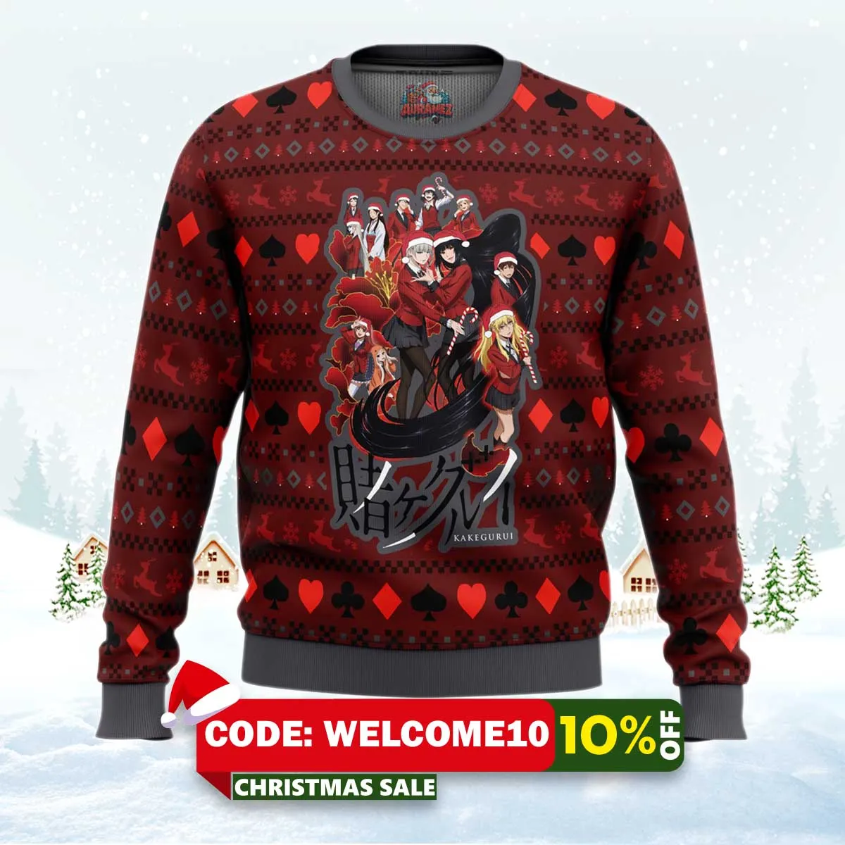 Tags: Kakegurui Hyakkaou Private Academy Ugly Christmas Sweater, Kakegurui sweater, funny ugly sweater, holiday gift idea, party outfit