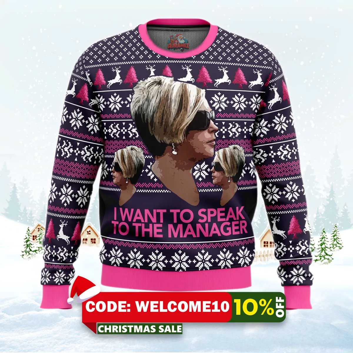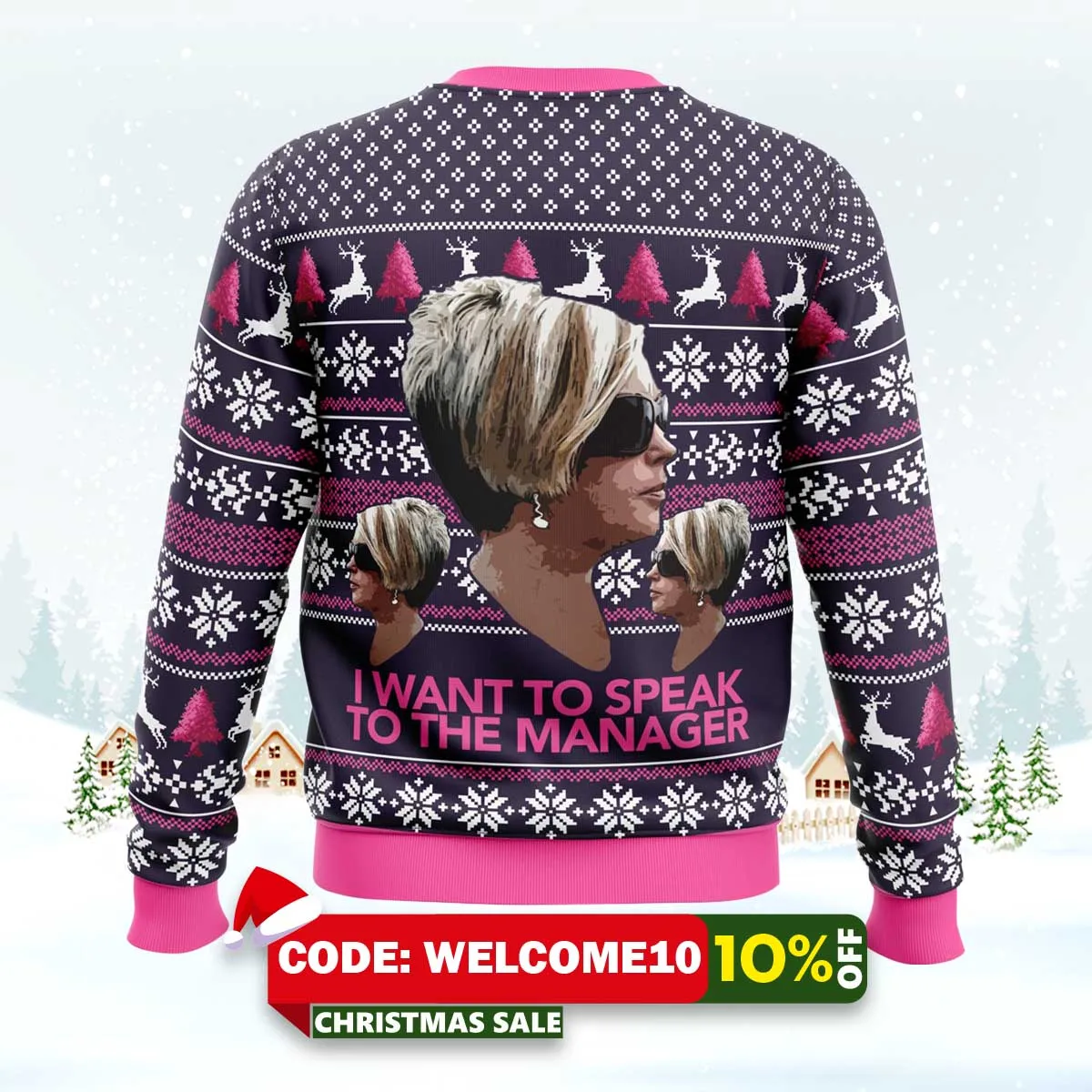 ⚠️ Limited stock available. Order your Karen Meme Ugly Christmas Sweater today from Auramez.com and make this season unforgettable!
