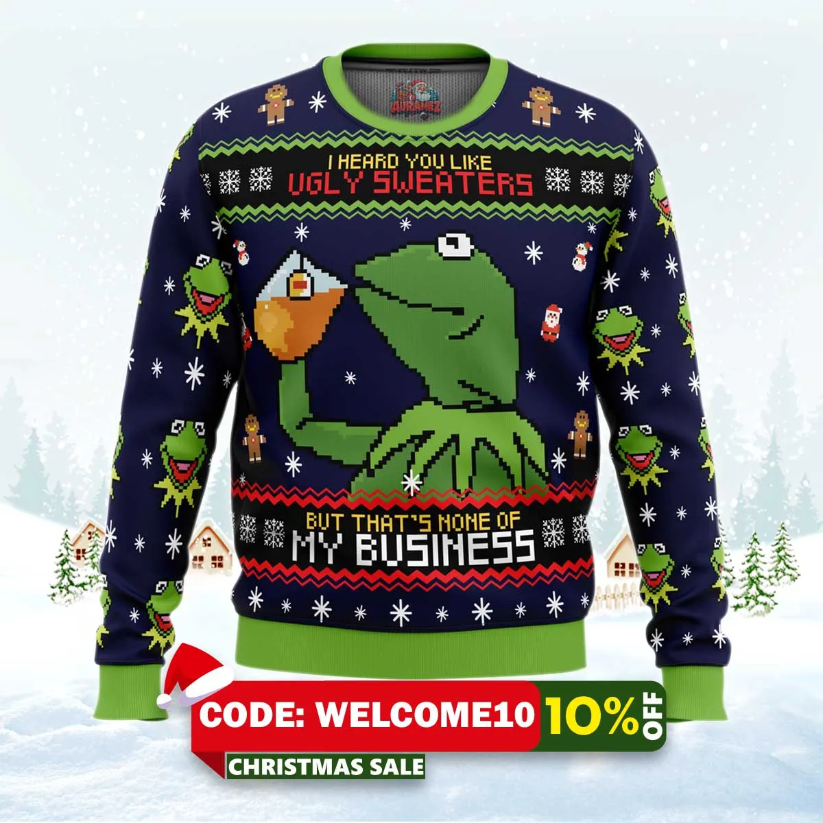 ⚠️ Limited stock available. Order your Kermit The Frog Ugly Christmas Sweater today from Auramez.com and make this season unforgettable!