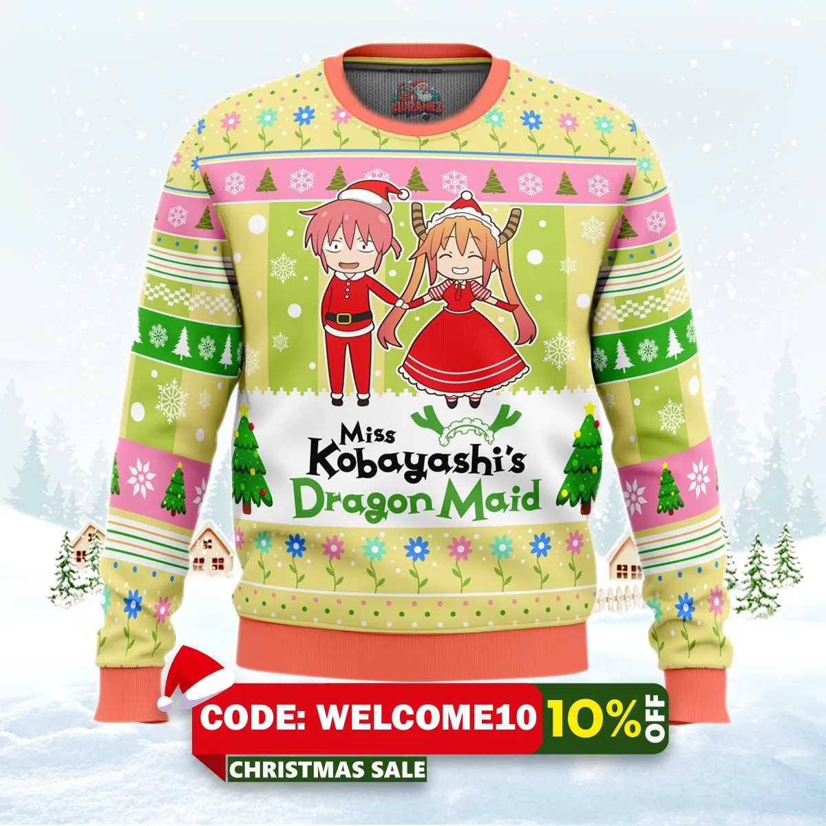 Tags: Kobayashi And Tooru Miss Kobayashi’S Dragon Maid Sweater, Miss Kobayashi’s Dragon Maid sweater, funny ugly sweater, holiday gift idea, party outfit
