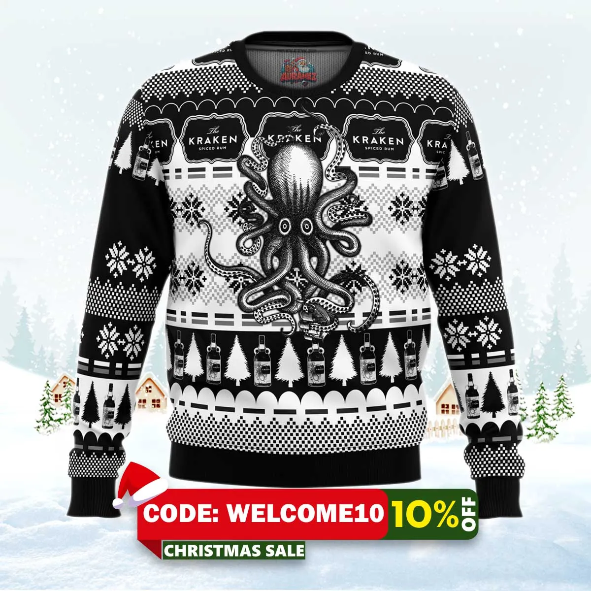 ⚠️ Limited stock available. Order your Kraken Black Spiced Rum Ugly Christmas Sweater today from Auramez.com and make this season unforgettable!