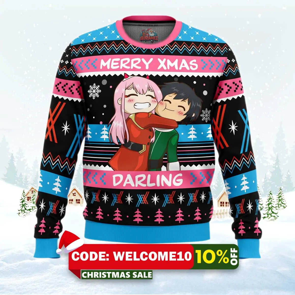 ⚠️ Limited stock available. Order your Merry Xmas Darling Darling In The Franxx Ugly Christmas Sweater today from Auramez.com and make this season unforgettable!