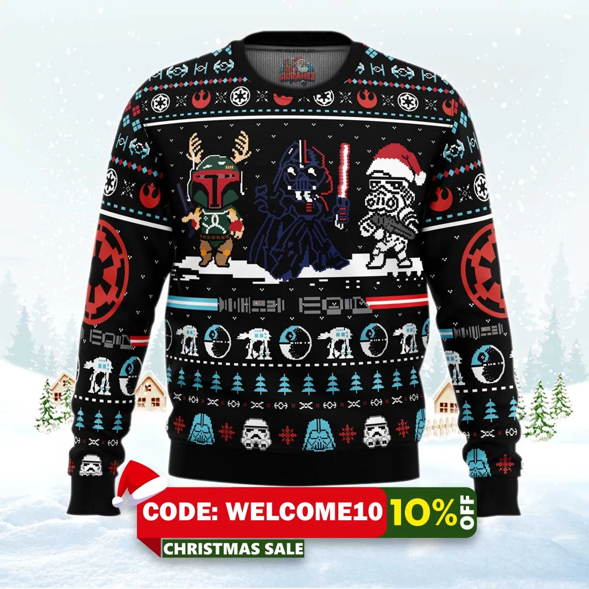 ⚠️ Limited stock available. Order your Merry Xmas Star Wars Ugly Christmas Sweater today from Auramez.com and make this season unforgettable!