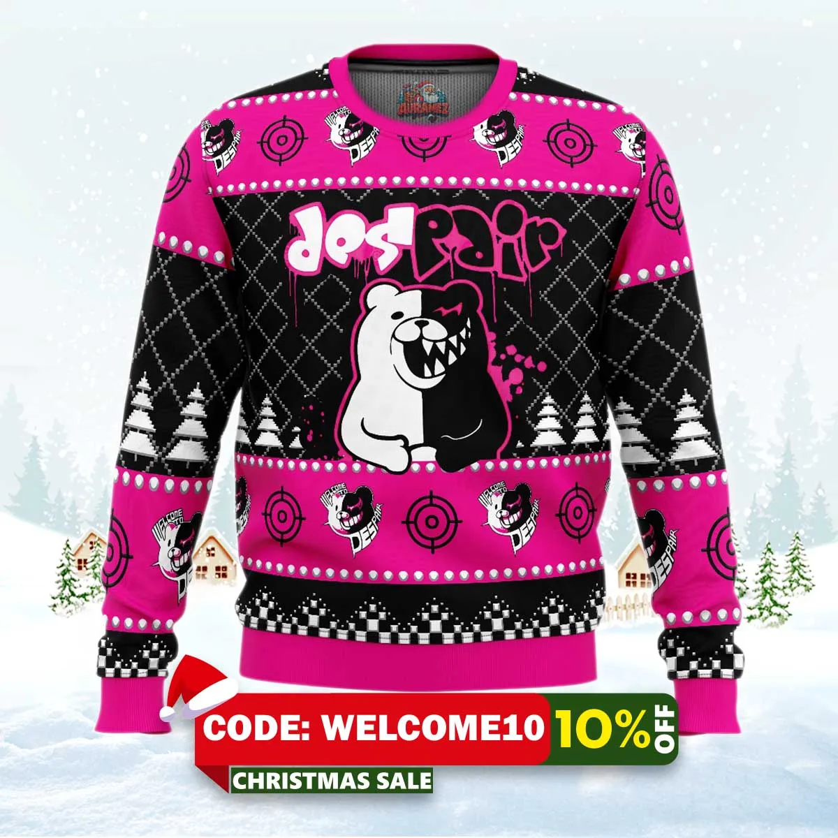 ⚠️ Limited stock available. Order your Monokuma Despair Danganronpa Ugly Christmas Sweater today from Auramez.com and make this season unforgettable!