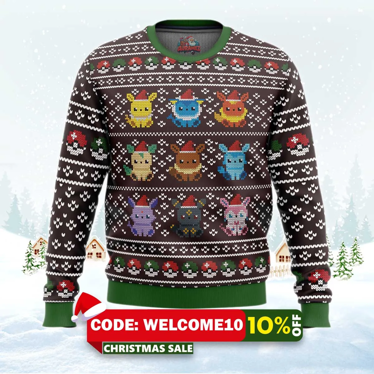 ⚠️ Limited stock available. Order your Pokemon Eeveelution Ugly Christmas Sweater today from Auramez.com and make this season unforgettable!