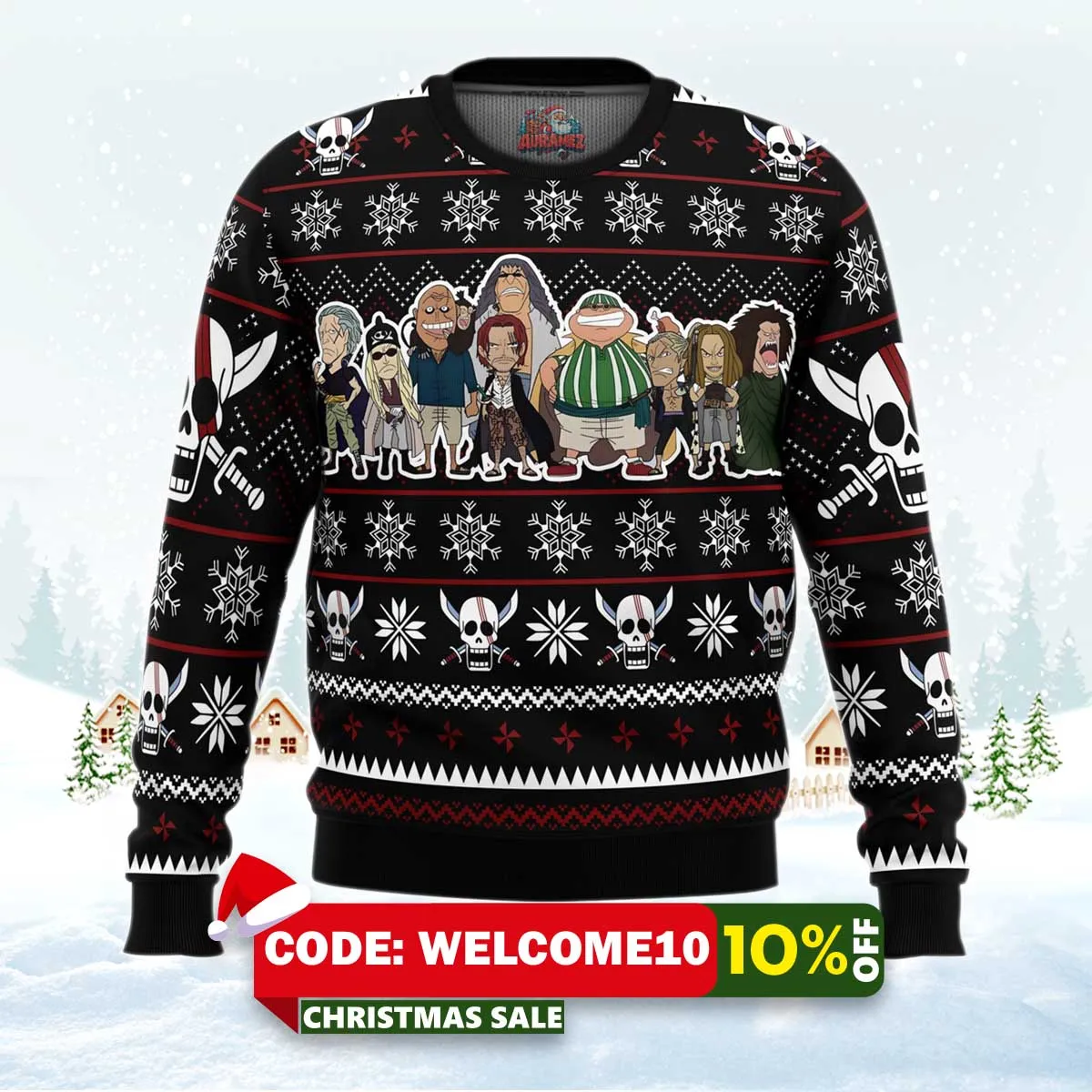 Celebrate the festive season with our Red Hair Pirates One Piece Ugly Christmas Sweater! This playful and cozy sweater is perfect for fans of the beloved anime series, One Piece. Whether you’re attending a holiday party or just looking to spread some cheer, this sweater will help you channel your inner pirate while staying warm and stylish!