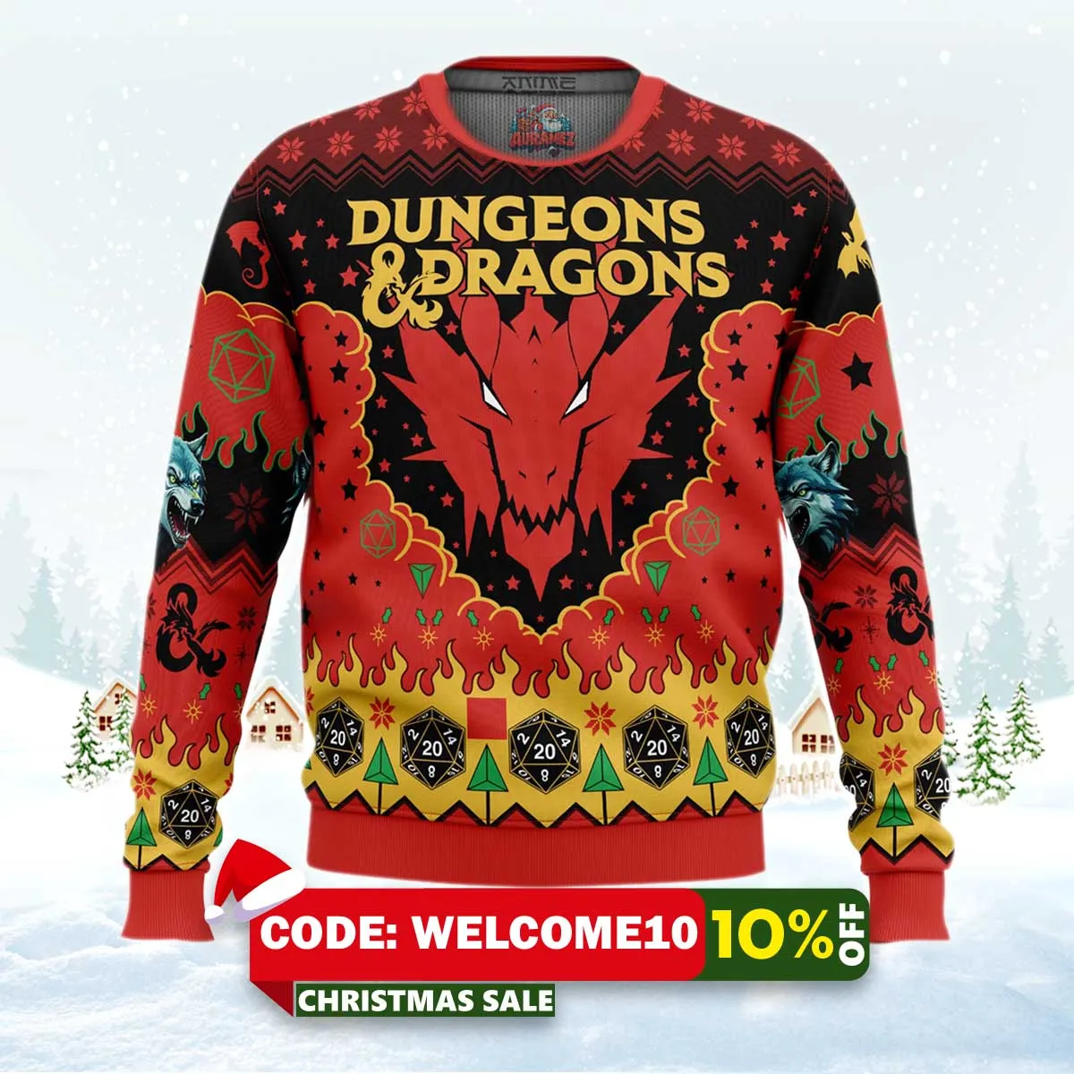 Ruby Dragon Dungeons And Dragons Ugly Christmas Sweater
