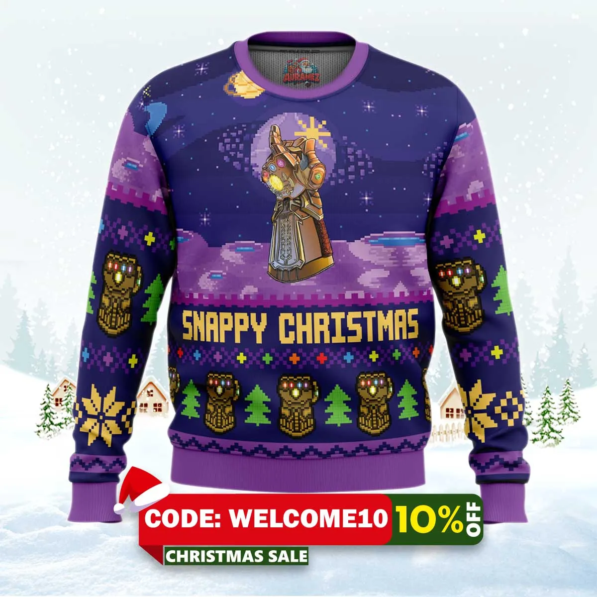 ⚠️ Limited stock available. Order your Snappy Christmas Infinity Gauntlet Marvel Ugly Christmas Sweater today from Auramez.com and make this season unforgettable!