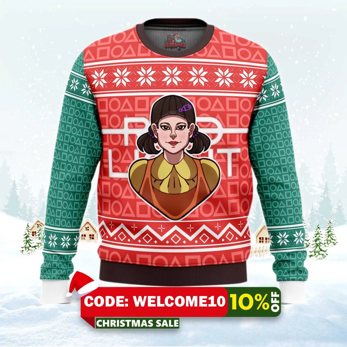 Squid Game Red Light Green Light Doll Ugly Christmas Sweater