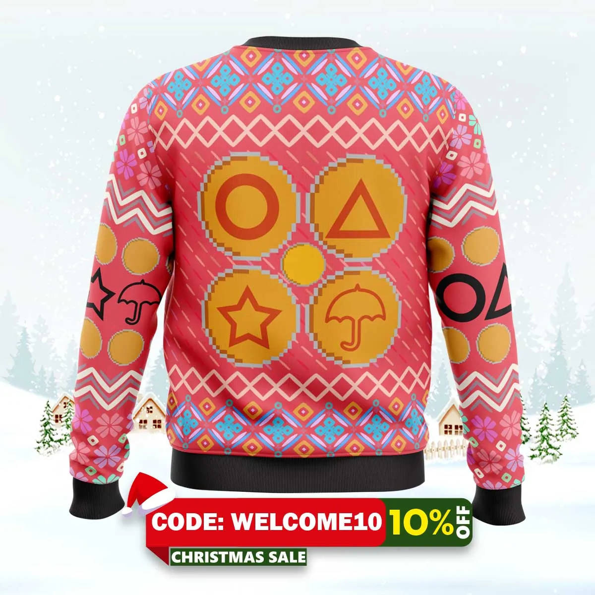 ⚠️ Limited stock available. Order your Squid Game Squidmas Ugly Christmas Sweater today from Auramez.com and make this season unforgettable!