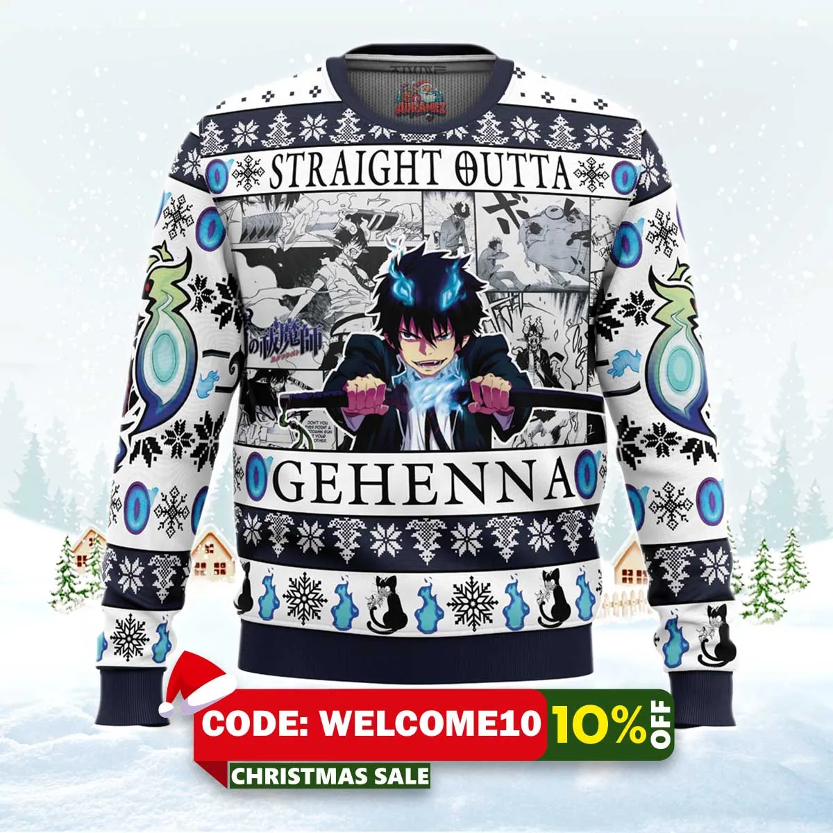 Straight Outta Gehenna Blue Exorcist Ugly Christmas Sweater