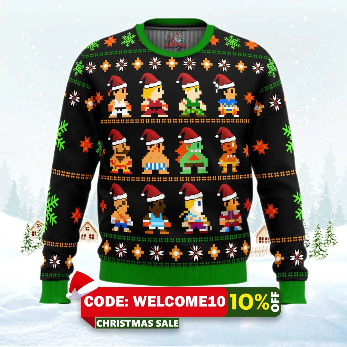 ⚠️ Limited stock available. Order your Street Fighter Classic Collection Ugly Christmas Sweater today from Auramez.com and make this season unforgettable!