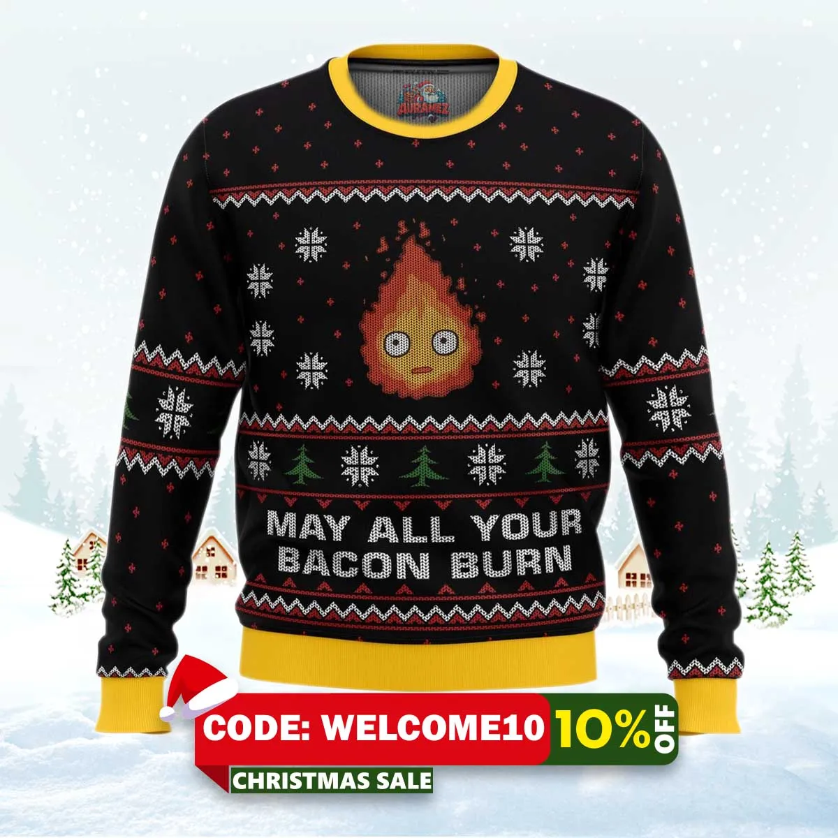 Studio Ghibli May All Your Bacon Burn Calcifer Ugly Christmas Sweater