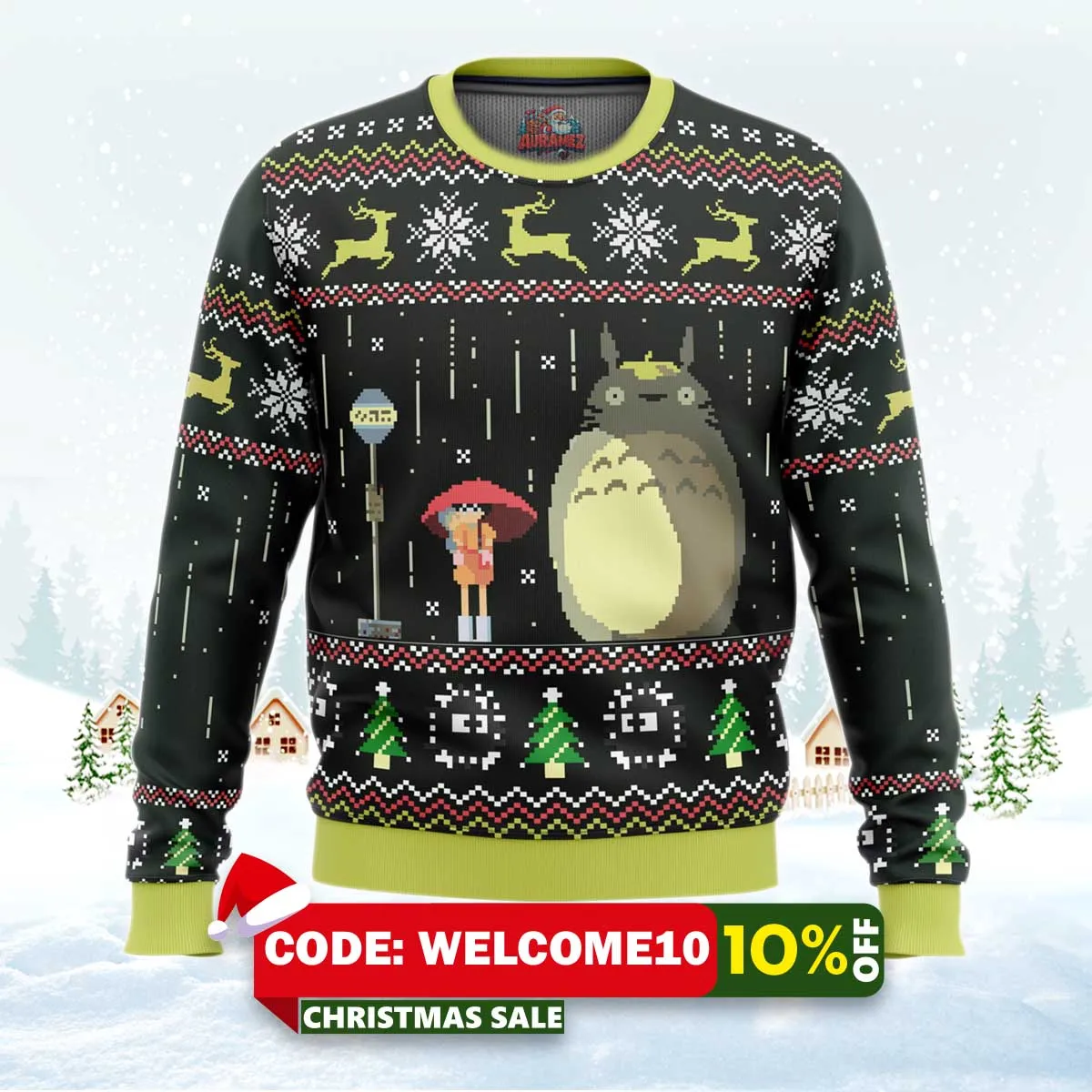 ⚠️ Limited stock available. Order your Studio Ghibli Totoro Rain Ugly Christmas Sweater today from Auramez.com and make this season unforgettable!