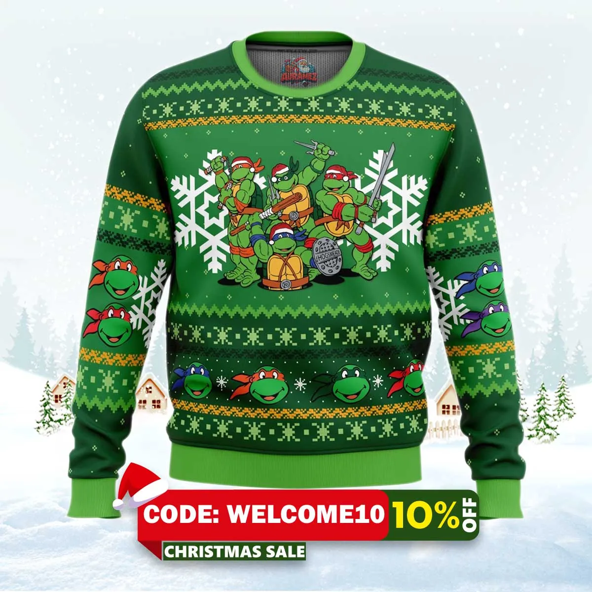 ⚠️ Limited stock available. Order your Teenage Mutant Ninja Turtles Christmas Ugly Christmas Sweater today from Auramez.com and make this season unforgettable!